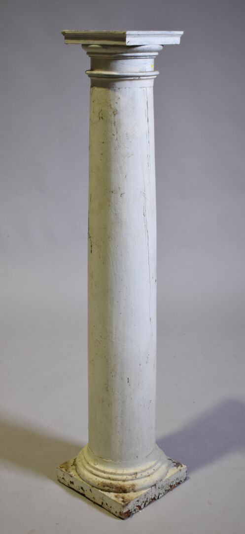 Lot n° 127 Adjugé : 132 € Selette colonne en bois sculpté laqué crème (usures,… Estimation : 30 / 50 €