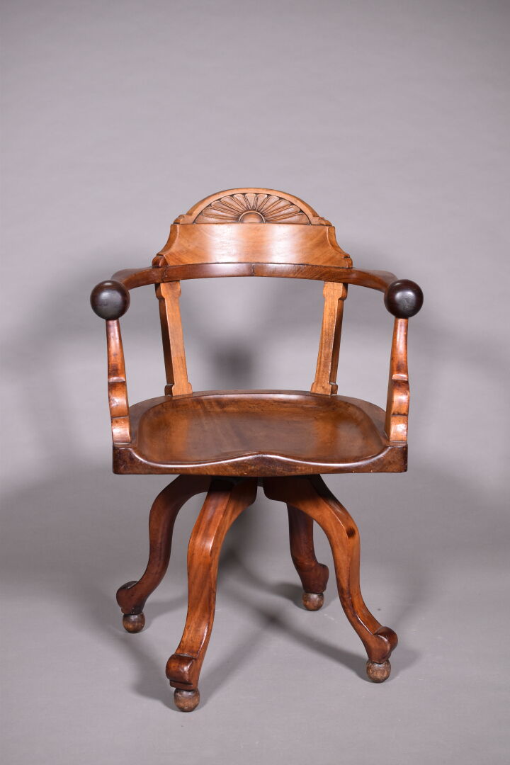 Lot n° 227 Adjugé : 140 € Fauteuil de bureau pivotant en acajou sculpté (fentes).… Estimation : 80 / 120 €