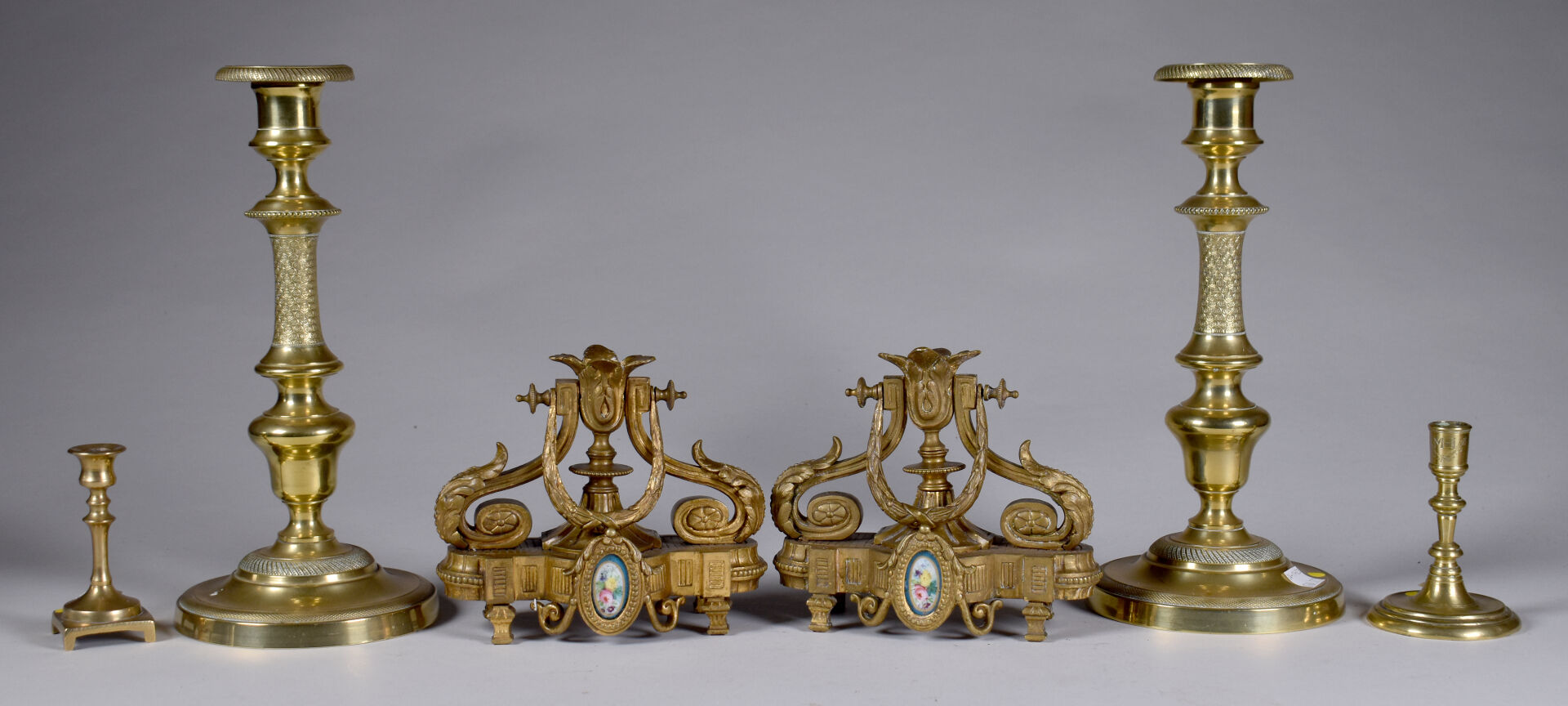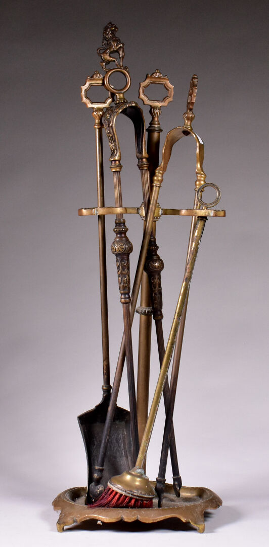 Lot n° 229 Adjugé : 60 € Nécessaire de cheminée dépareillé en bronze laiton comprenant… Estimation : 10 / 20 €