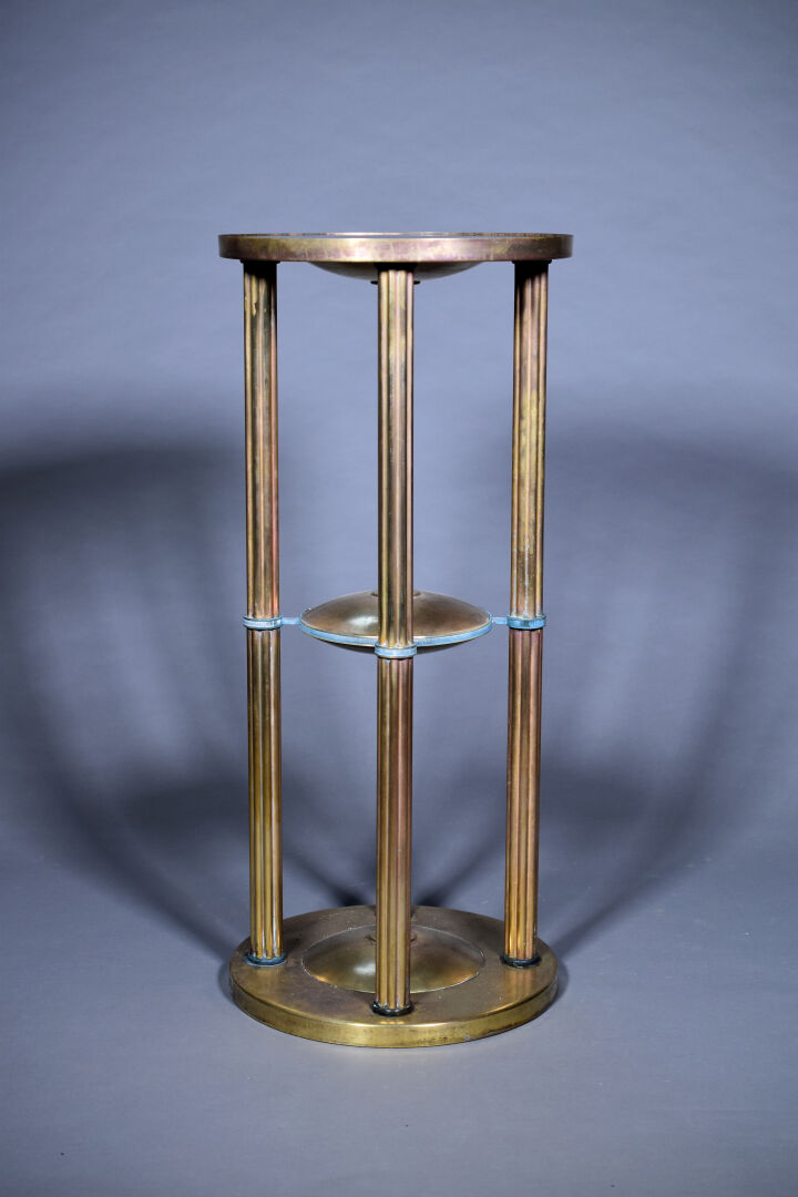 Lot n° 240 Adjugé : 450 € Sellette à quatre colonnes cannelées en laiton (vert… Estimation : 150 / 200 €
