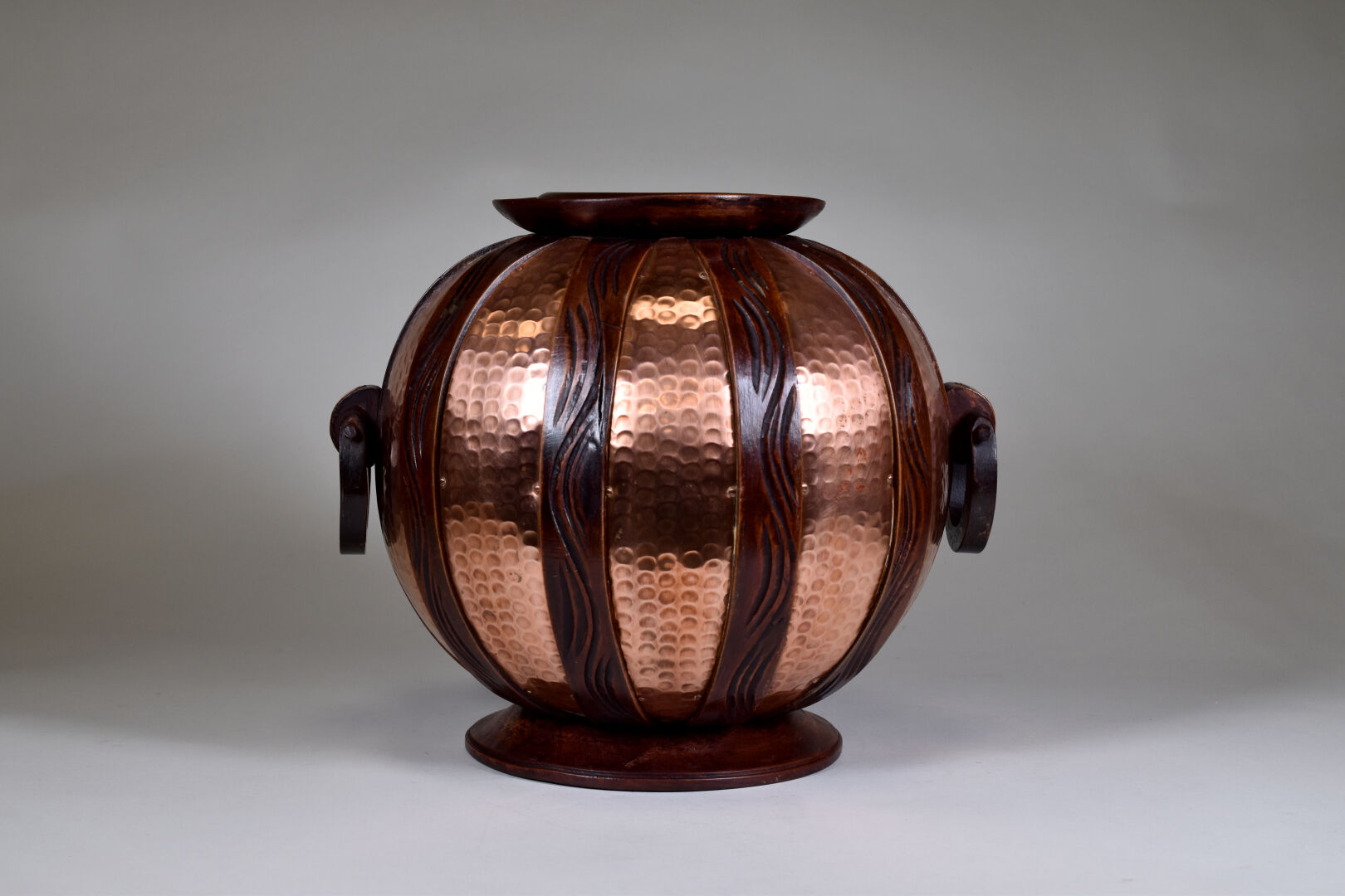 Lot n° 181 Adjugé : 240 € Gustave SERRURIER-BOVY (1858-1910). Vase en cuivre martelé alterné… Estimation : 200 / 400 €