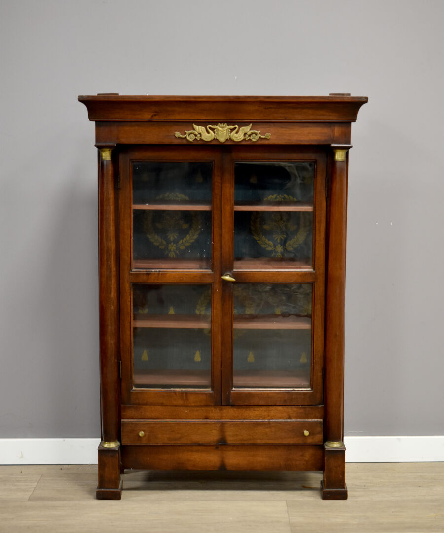 Lot n° 92 Adjugé : 160 € Petite vitrine murale en acajou et placage d’acajou.… Estimation : 120 / 180 €