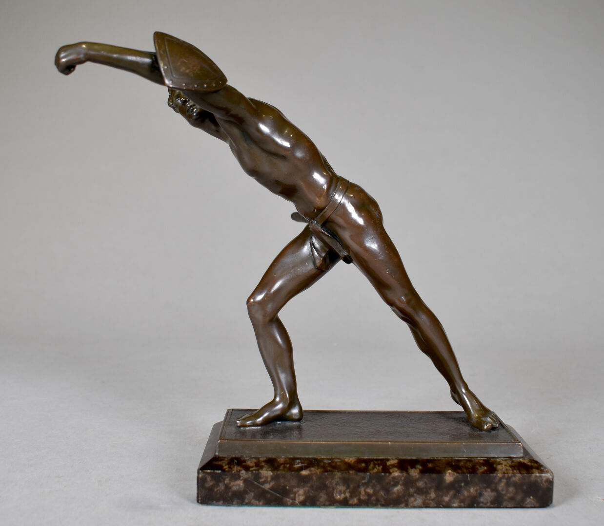 Lot n° 126 Régule patiné brun représentant un gladiateur (manque probablement… Estimation : 40 / 60 €