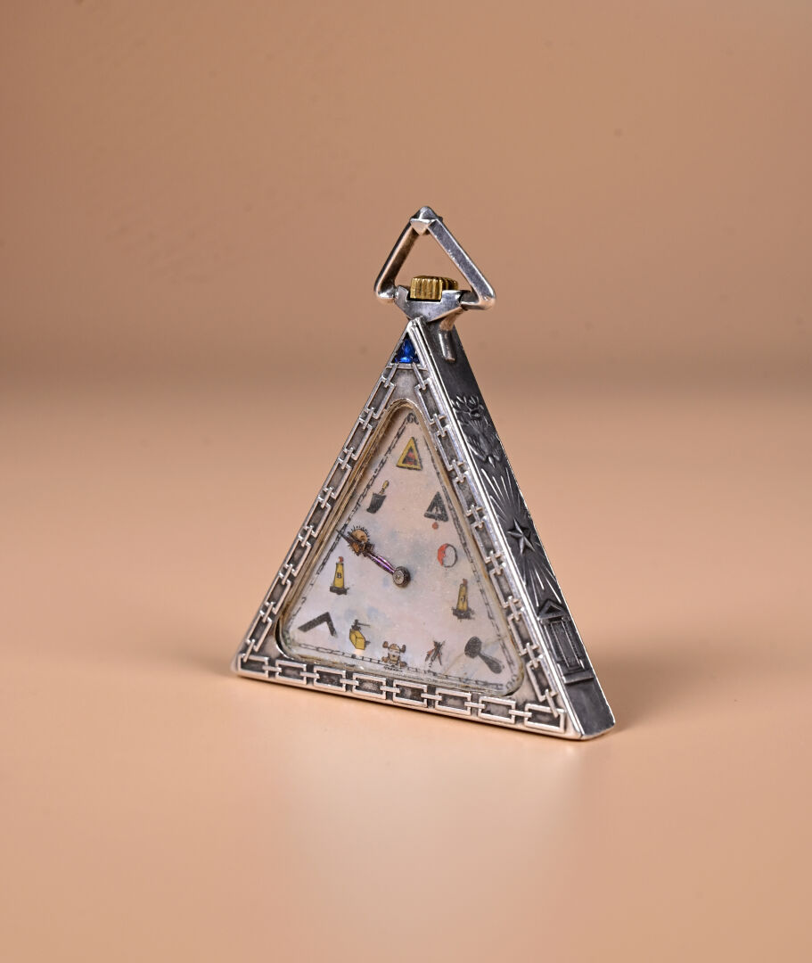 Lot n° 262 SCHWAB-LOEILLET. Montre de gousset maçonnique de forme triangulaire… Estimation : 1000 / 2000 €