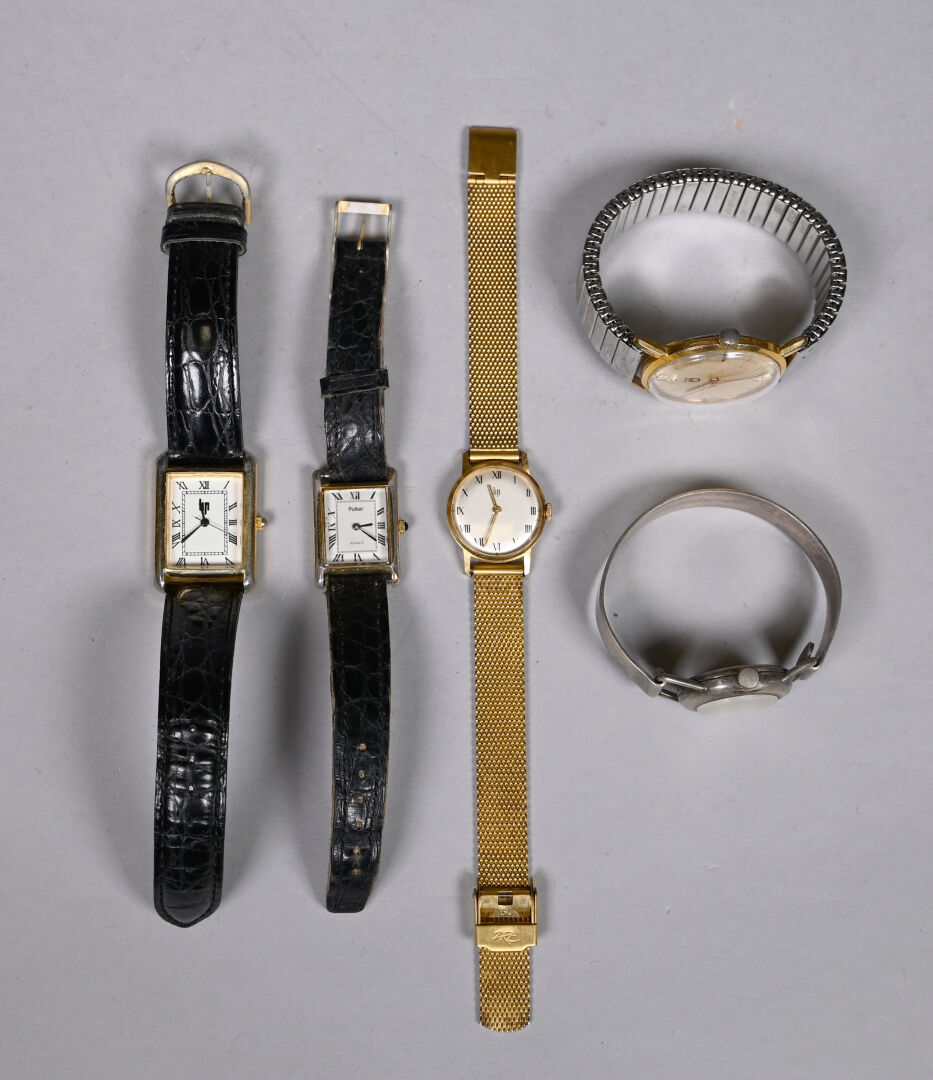 NOS LOTS EN VENTE AUX ENCHÈRES Lot n° 69 Pendule portique en marbre rose et beige. Cadran… Estimation : 60 / 80 € Lot n° 110 Ensemble de 5 montres bracelet en métal doré… Estimation : 40 / 60 € Lot n° 103 Mécanisme à caisse de pendule au coq, avec… Estimation : 50 / 80 € Lot n° 102 Carillon ODO automate, à décor peint de la… Estimation : 30 / 60 € Lot n° 101 Garniture de cheminée en marbre portor et marbre… Estimation : 80 / 120 € Lot n° 274 TIFFANY&CO. Réveil en métal à cadran signé. Haut.… Estimation : 20 / 40 € Lot n° 273 SEIKO SPORTURA. KINETIC. Montre bracelet d’homme à boitier… Estimation : 60 / 100 € Lot n° 272 CARTIER, pendulette de bureau en métal doré. Mouvement… Estimation : 60 / 100 € Lot n° 271 Deux montres bracelet de dame à boitiers en… Estimation : 60 / 121 € Page1 Page2 Page3 Page4 Page5