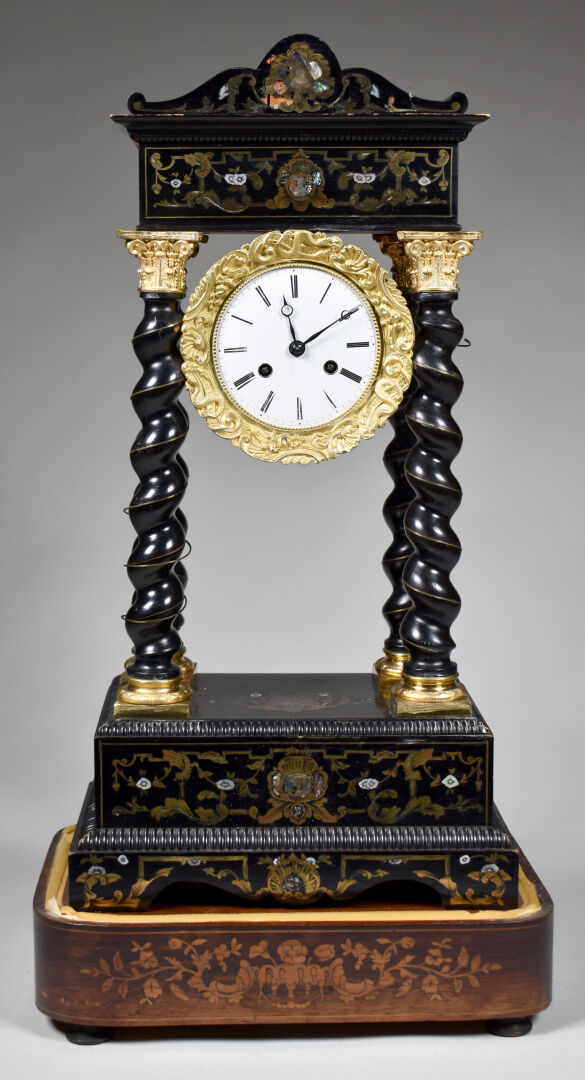 Lot n° 146 Adjugé : 270 € Garniture de cheminée en bronze comprenant une pendule… Estimation : 120 / 180 €