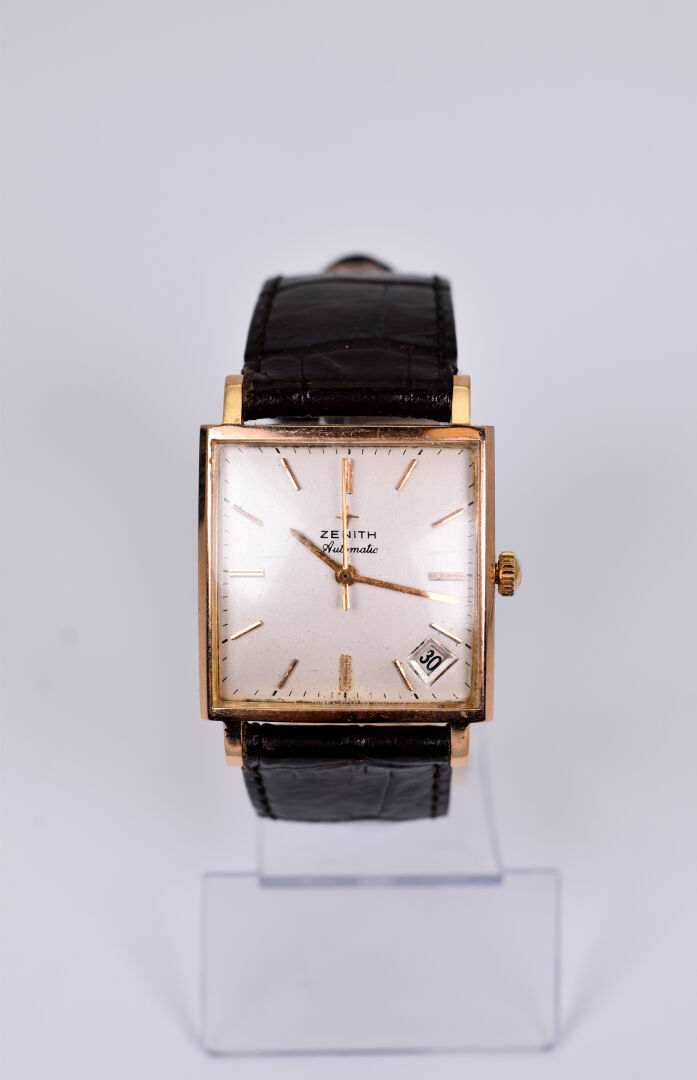 Lot n° 220 Adjugé : 700 € ZENITH. Montre bracelet d’homme à boitier carré en… Estimation : 700 / 900 €