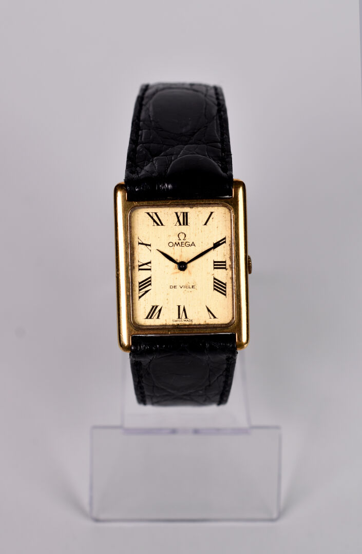 Lot n° 217 Adjugé : 350 € OMEGA DE VILLE. Montre vintage d’homme, boitier rectangle… Estimation : 250 / 400 €