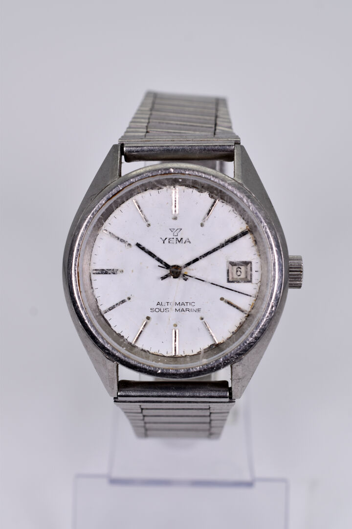 Lot n° 136 Adjugé : 40 € YEMA AUTOMATIC SOUS MARINE. Montre bracelet tout acier,… Estimation : 50 / 70 €