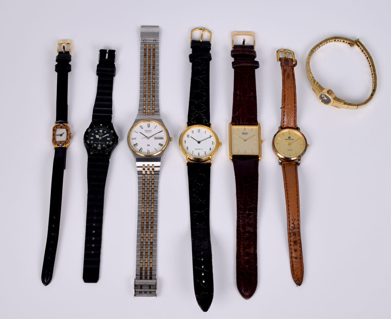 Lot n° 134 Adjugé : 40 € Ensemble de sept montres fantaisie dont SEIKO, CASIO… Estimation : 40 / 60 €