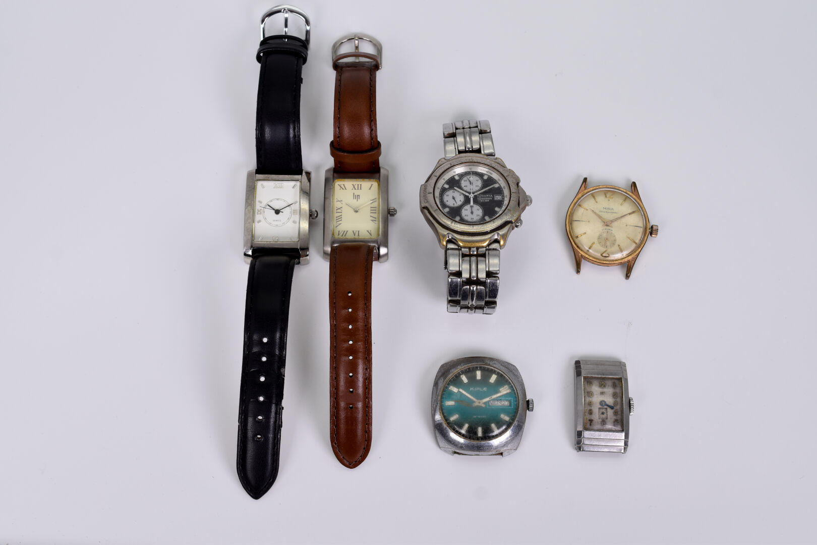 Lot n° 133 Adjugé : 40 € Ensemble de montres vintage dont Rodania chrono tout… Estimation : 40 / 60 €