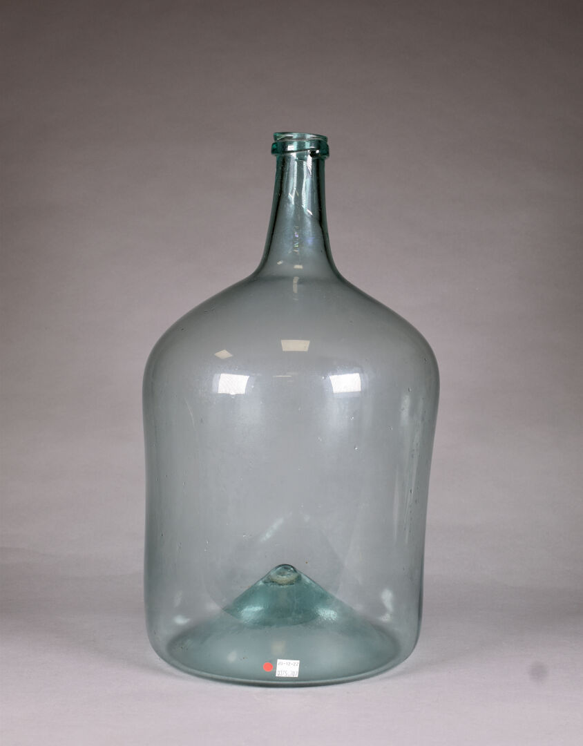 Lot n° 240 Adjugé : 50 € Dame Jeanne en verre légèrement bleuté. Probablement Grésigne… Estimation : 60 / 80 €