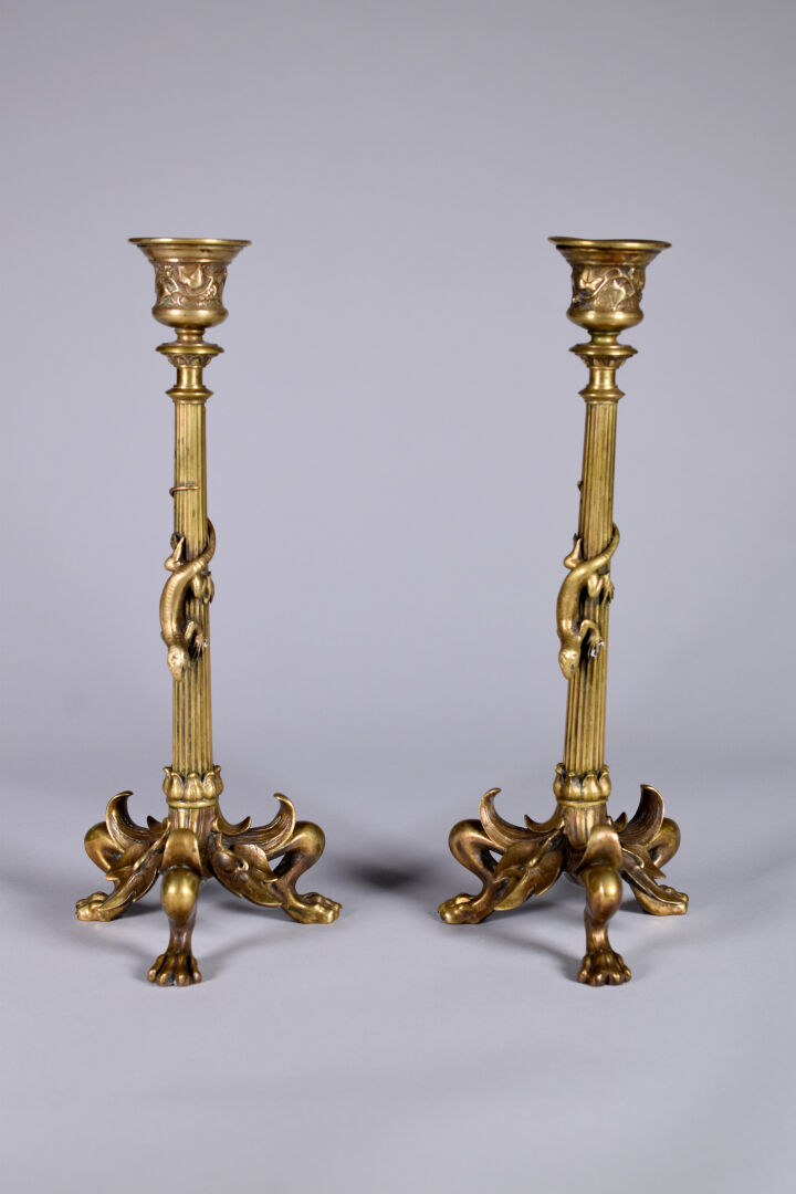 Lot n° 245 Adjugé : 30 € Alphonse GIROUX. Paris. Chandelier en bronze, le fût… Estimation : 50 / 70 €