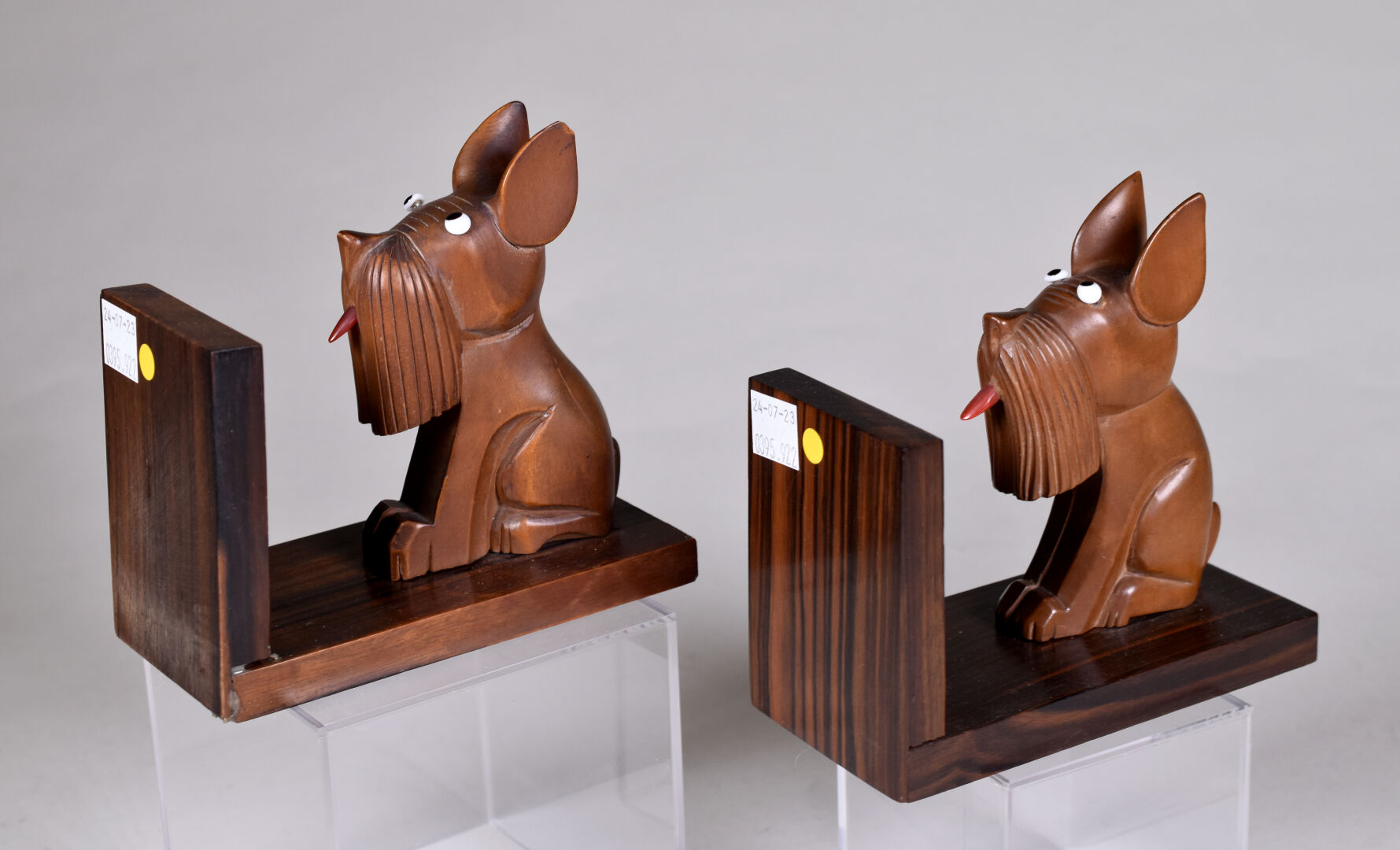 Lot n° 170 Adjugé : 30 € Paire de serre-livres en palissandre et bois naturel… Estimation : 30 / 60 €
