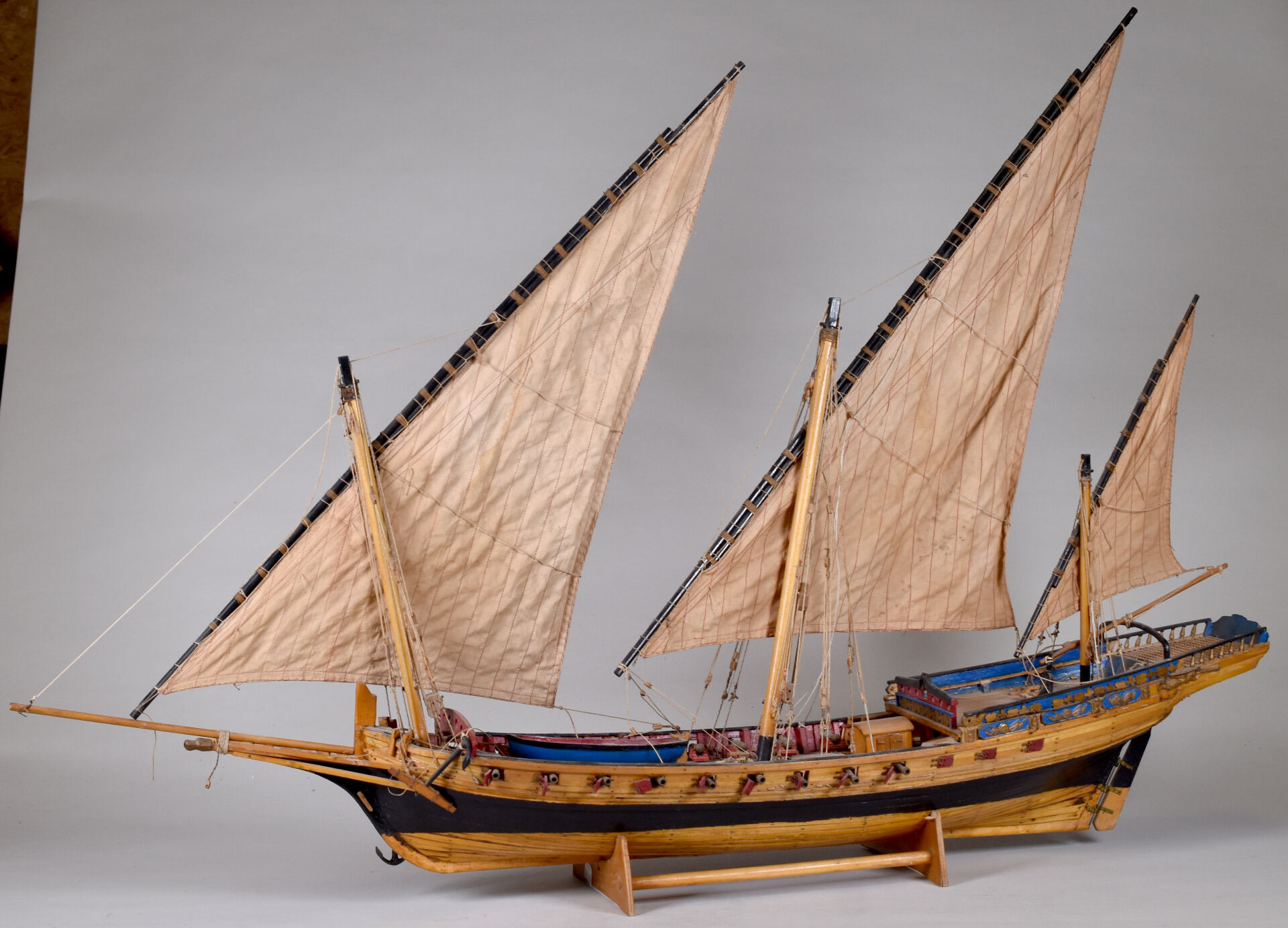 Lot n° 172 Adjugé : 70 € Maquette de bateau « L’Indiscret – Chebec » sur son… Estimation : 80 / 120 €