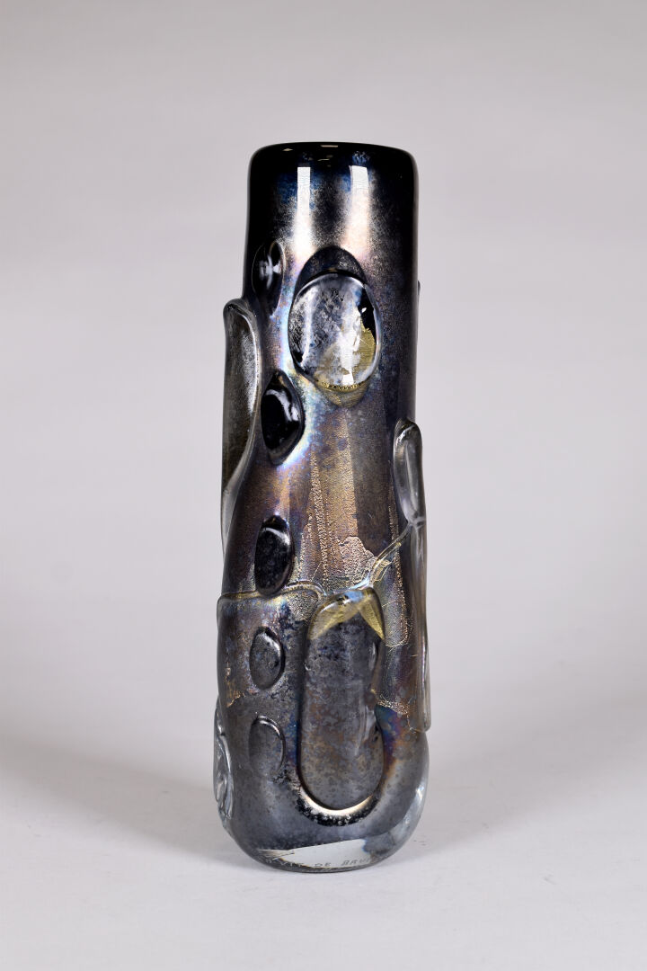 Lot n° 293 Adjugé : 40 € Fernando AGOSTINO (XXe siècle). Vase tubulaire en verre… Estimation : 50 / 80 €