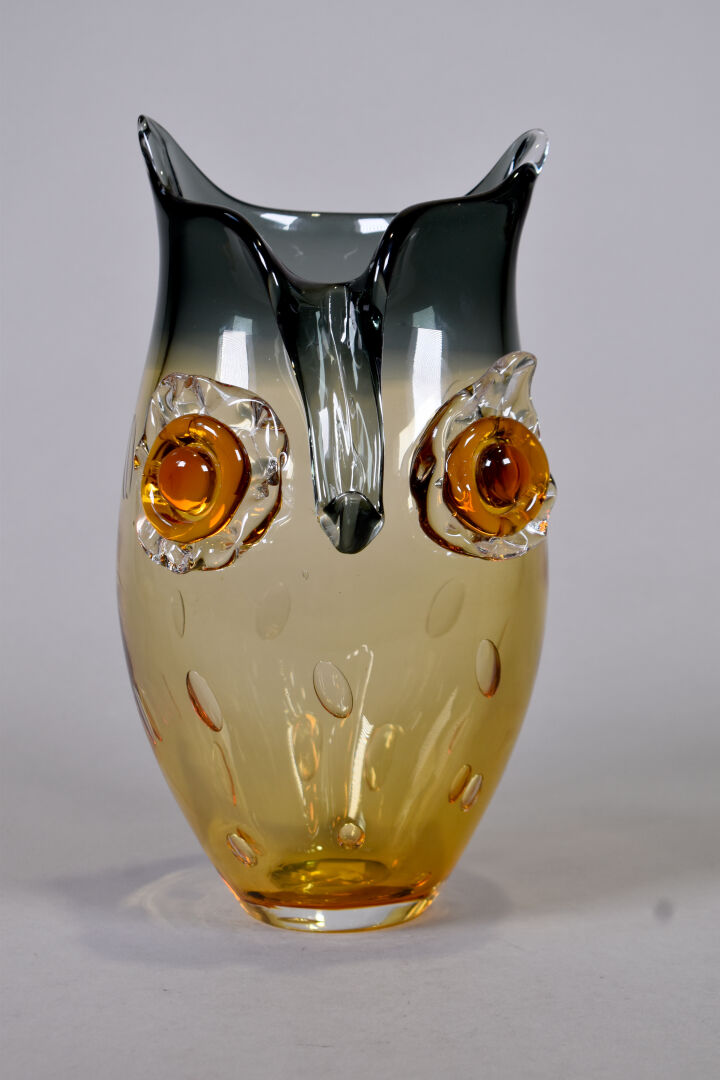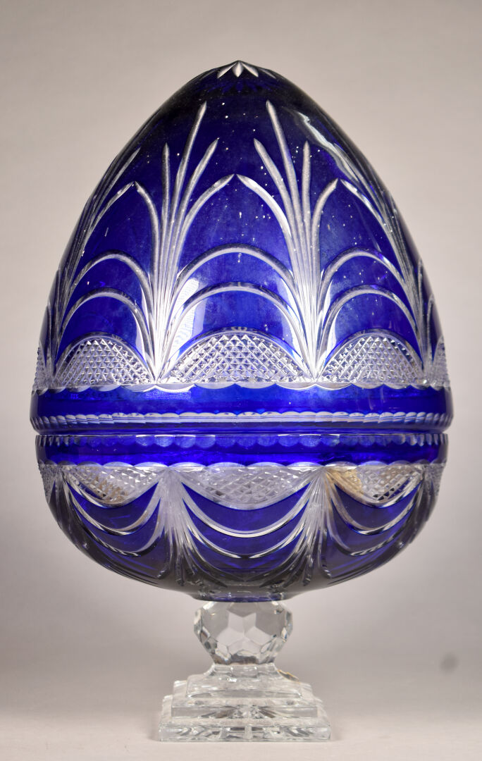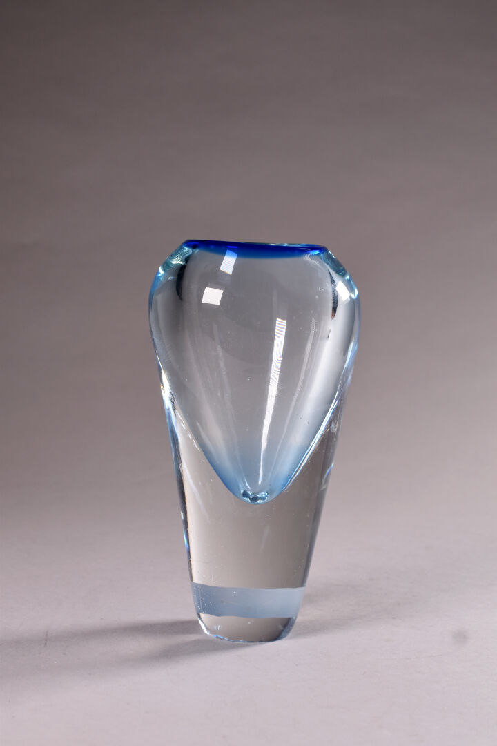 Lot n° 325 Adjugé : 80 € Vase en cristal bleuté sommerso (une égrenure). XXe… Estimation : 80 / 120 €