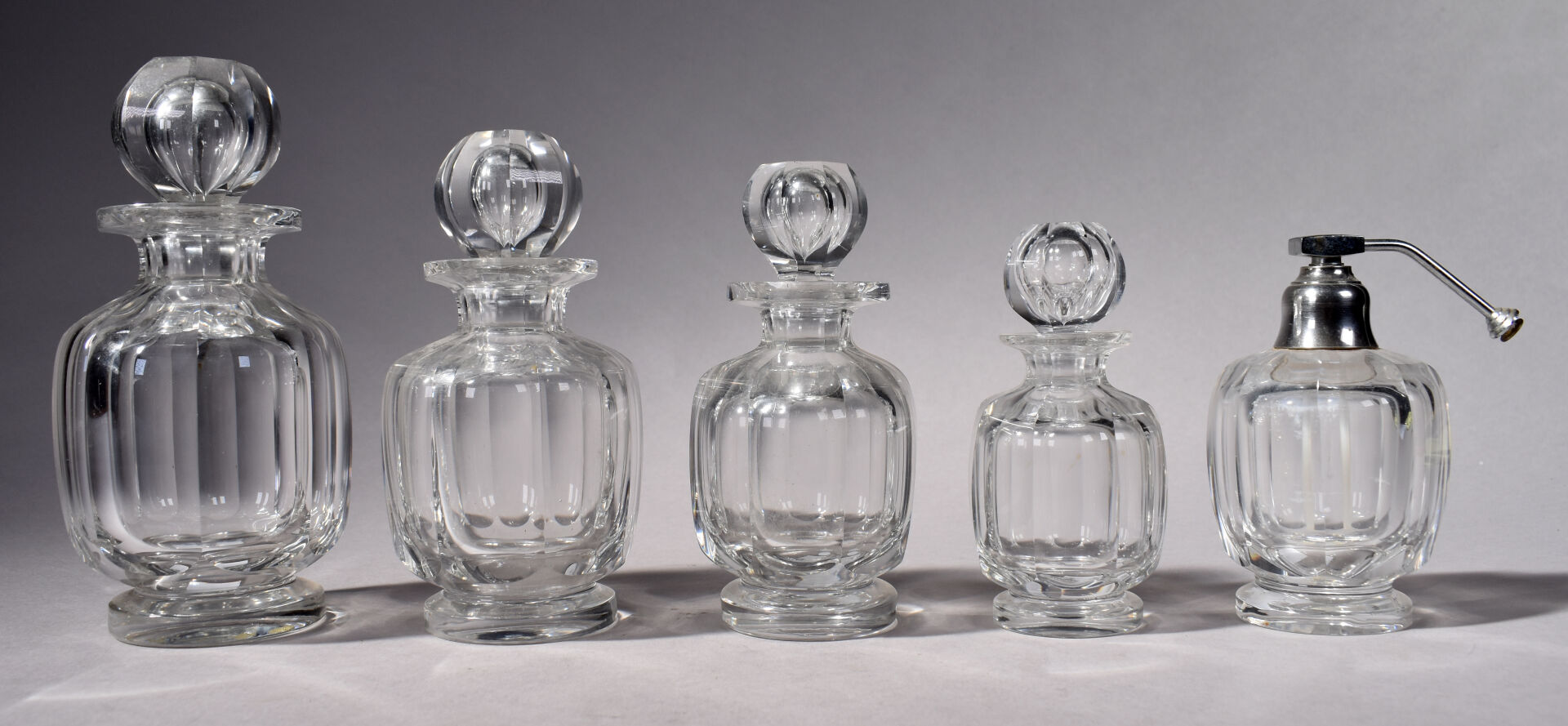 Lot n° 321 Adjugé : 160 € BACCARAT. Nécessaire de toilette en cristal modèle « Harcourt »… Estimation : 80 / 120 €
