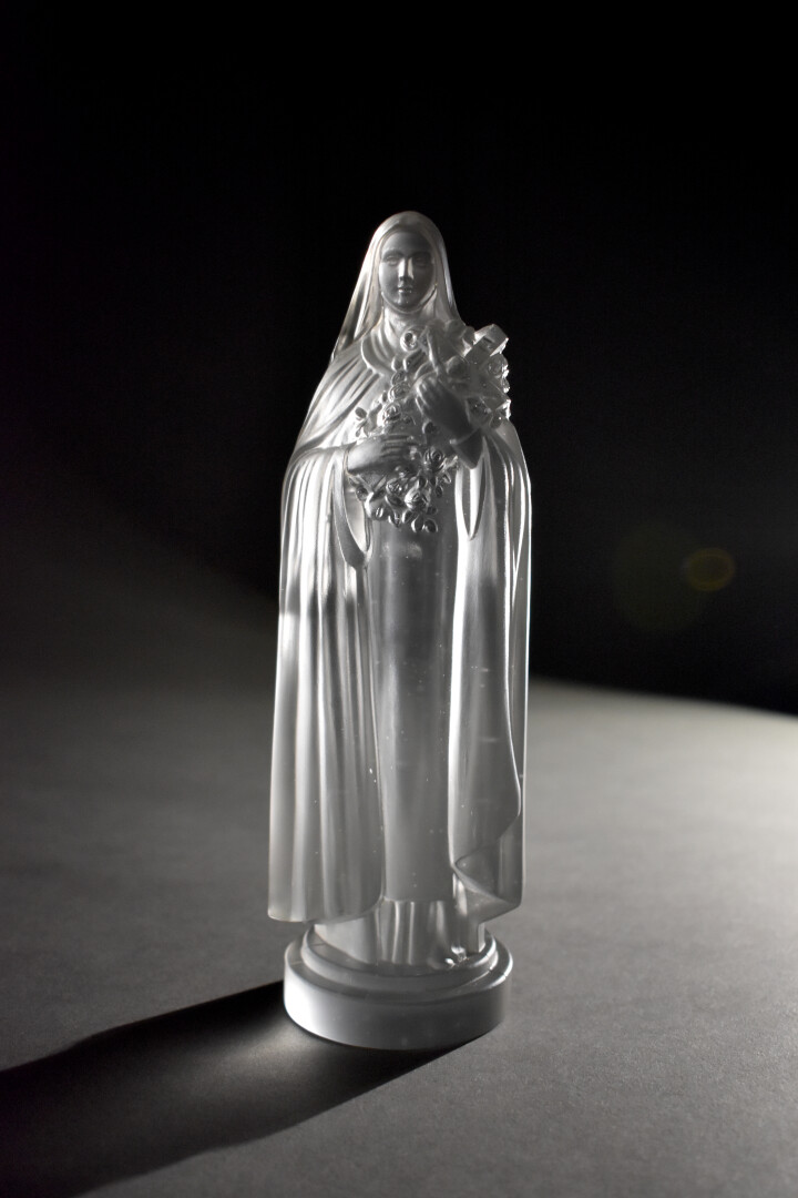 Lot n° 496 Adjugé : 15 € ETLING FRANCE. Vierge en verre légèrement dépoli. Marquée… Estimation : 20 / 30 €