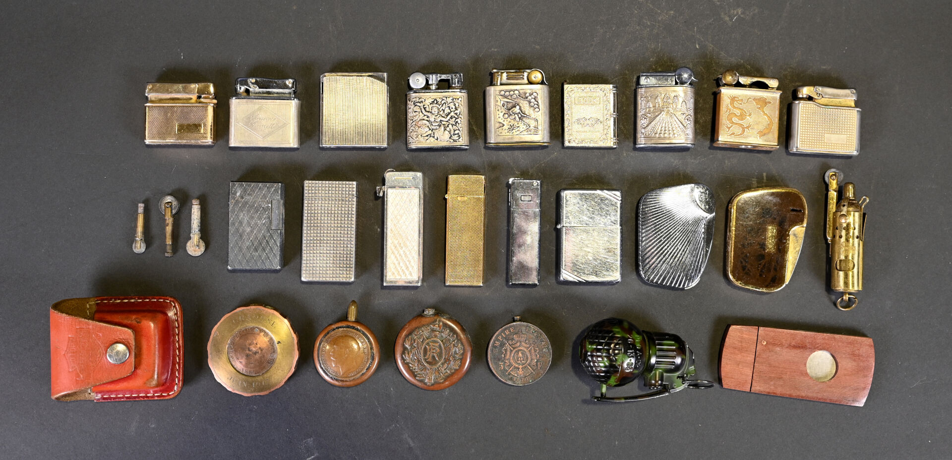 NOS LOTS EN VENTE AUX ENCHÈRES Lot n° 133 Vase balustre sommerso en verre turquoise, bleu roi… Estimation : 40 / 60 € Lot n° 132 Ensemble de 5 pipes en bois et écume… Estimation : 60 / 100 € Lot n° 131 Coupe de maquette de bateau « Victory ». Fabrication Madagascar.… Estimation : 60 / 80 € Lot n° 130 Echarpe de Franc-Maçon brodée d’attributs en fils doré… Estimation : 80 / 100 € Lot n° 100 Petit coffre en verre vert à décor émaillé… Estimation : 60 / 90 € Lot n° 99 Grand vase balustre à col resserré en verre… Estimation : 60 / 80 € Lot n° 98 Ensemble de 24 briquets de collection, certains incomplets.… Estimation : 50 / 100 € Lot n° 97 Pommeau de canne en métal doré et nacre… Estimation : 40 / 60 € Lot n° 96 Coupe sur piédouche en verre légèrement jaune (usures… Estimation : 20 / 40 € Page1 Page2 Page3 Page4 Page5