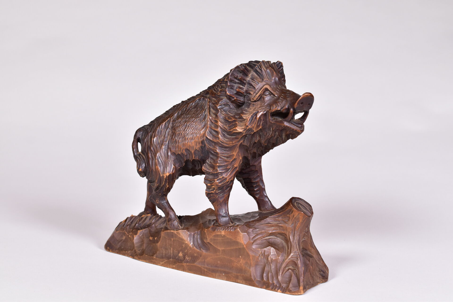 Lot n° 272 Adjugé : 30 € Sanglier en bois sculpté (égrenure sur une oreille).… Estimation : 30 / 60 €