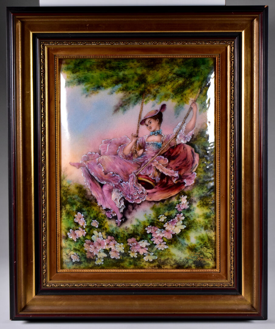 Lot n° 88 Adjugé : 60 € D’après FRAGONNARD. C. DAN à Limoges. Plaque émaillée… Estimation : 60 / 80 €