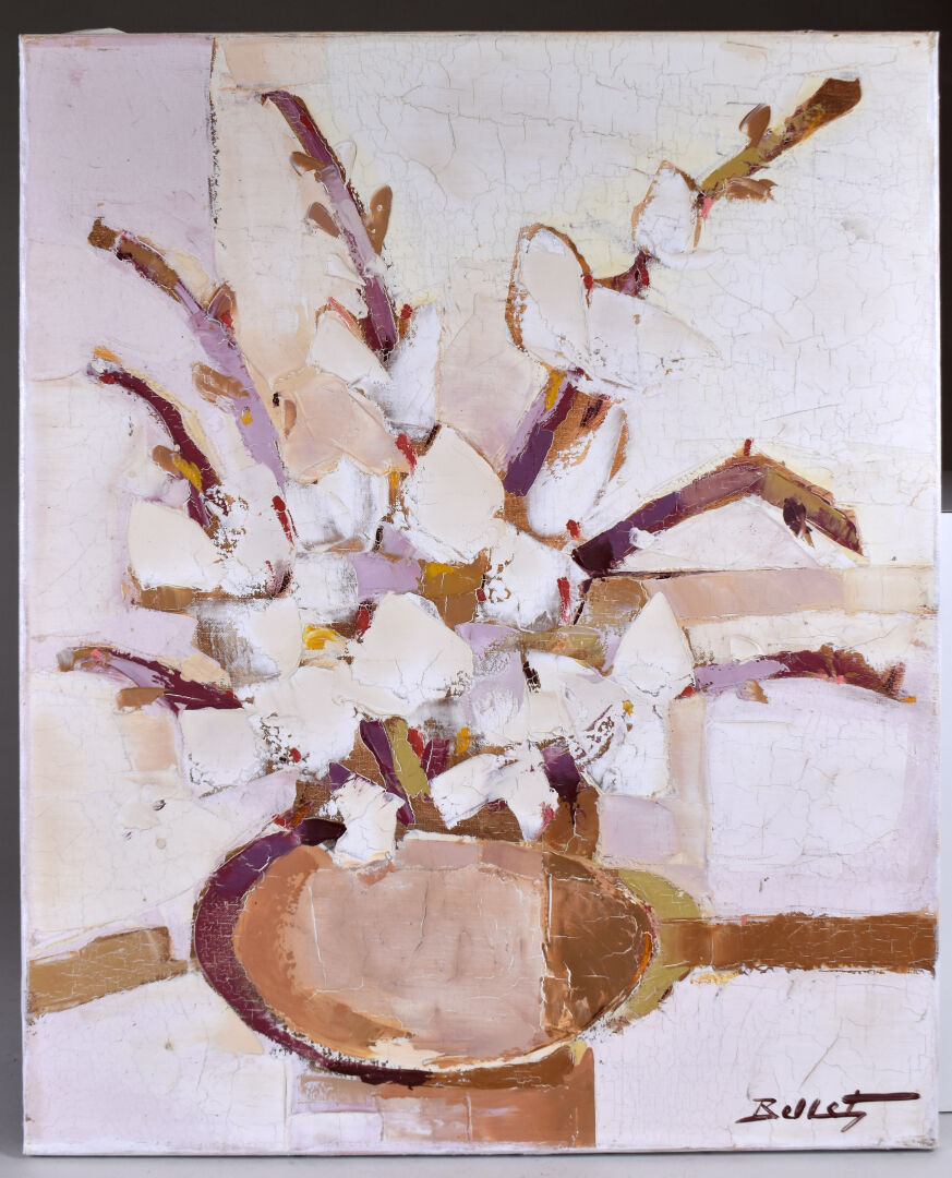 Lot n° 121 Adjugé : 40 € Emile BELLET (Né en 1941). « Glaïeuls blancs ». Huile… Estimation : 40 / 60 €