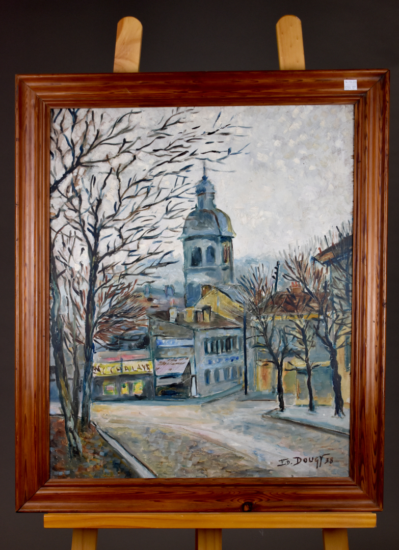 Lot n° 259 Adjugé : 30 € Edouard DOUGY (1912-1989). Eglise Notre-Dame. Huile sur panneau… Estimation : 30 / 40 €