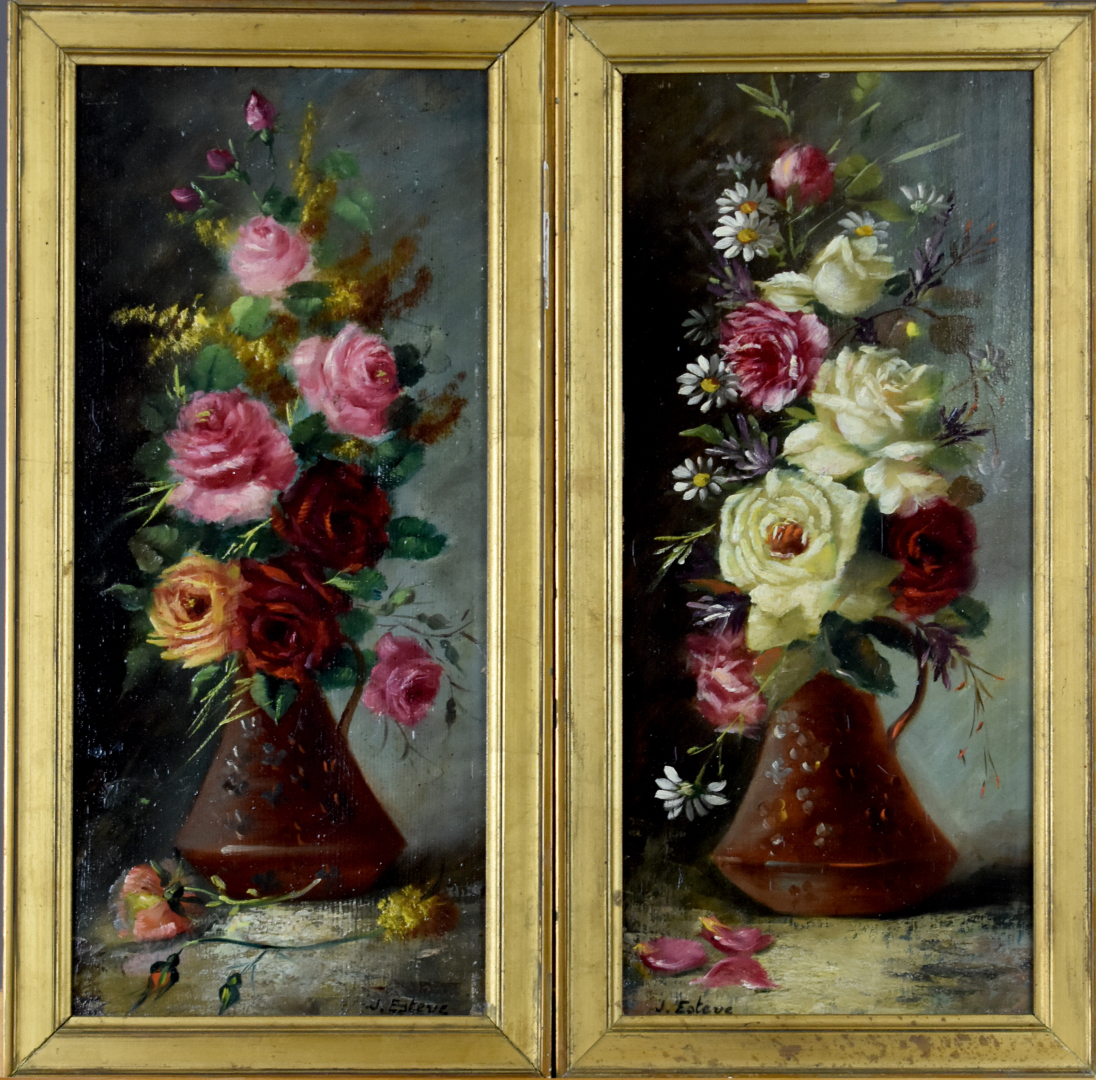Lot n° 76 Adjugé : 85 € J. ESTEVE (XIXe-XXe siècle). Bouquets de fleurs. Deux… Estimation : 40 / 80 €