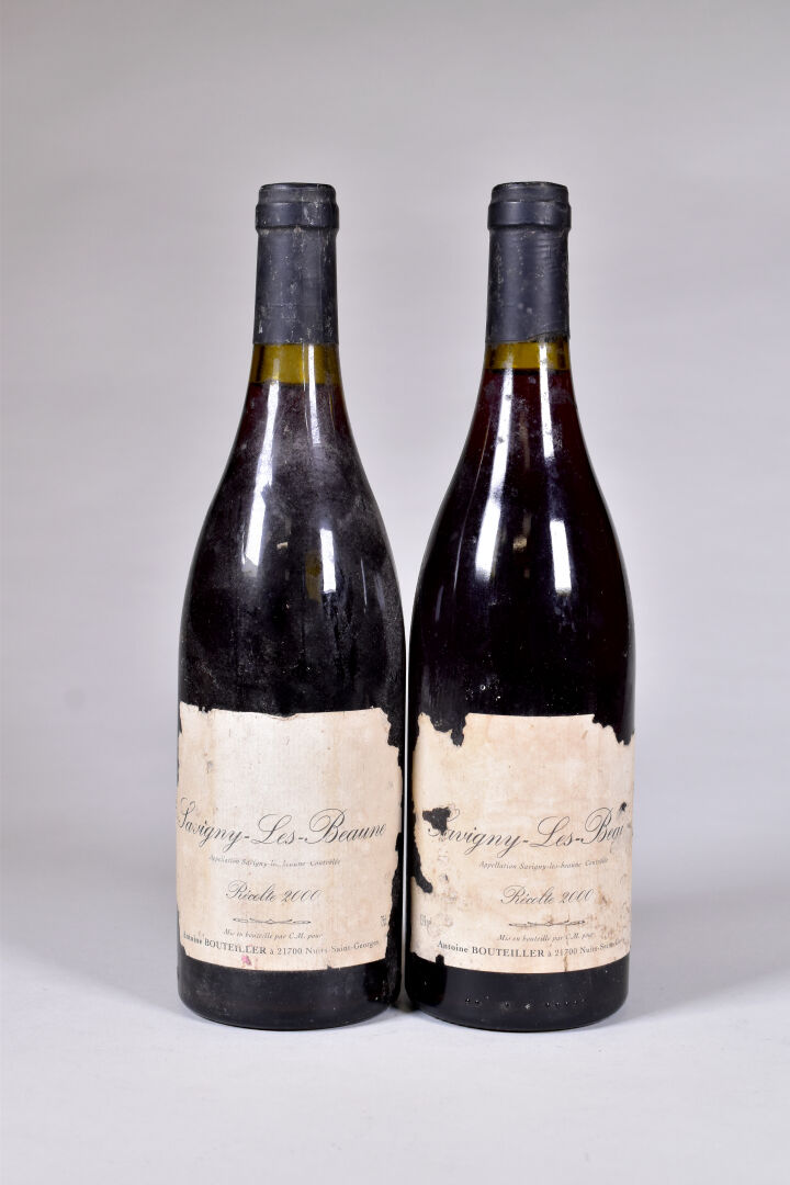Lot n° 127 2 bouteilles, Savigny-Les-Beaune, Antoine Bouteiller, 2000. Étiquettes fanées,… Estimation : 30 / 50 €