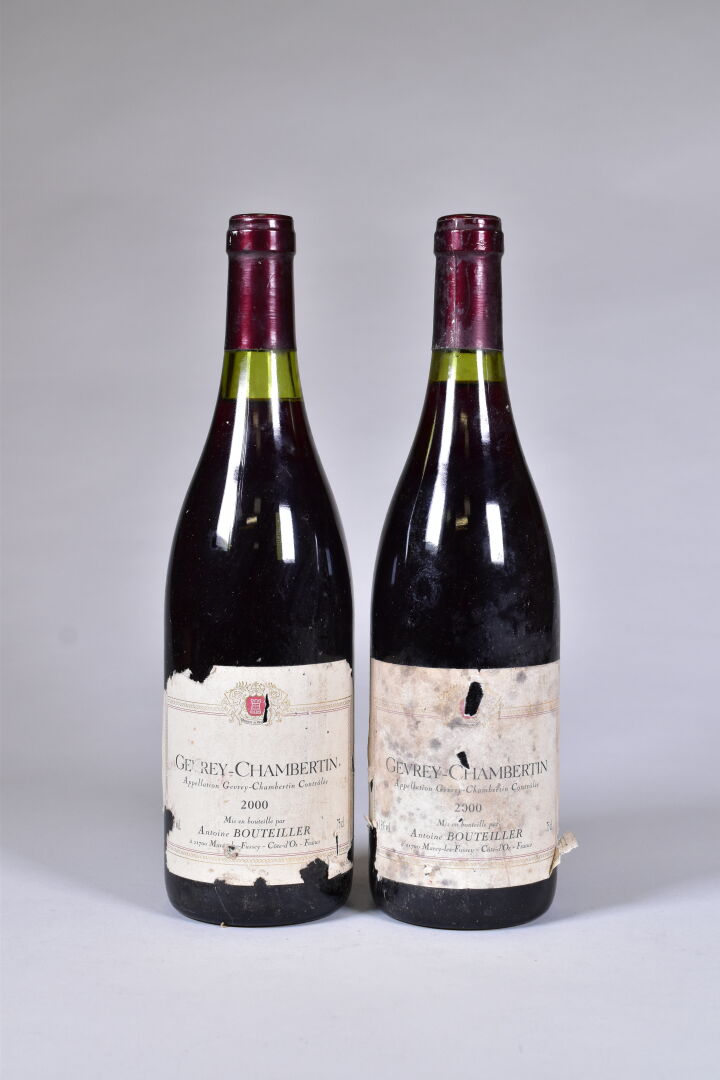Lot n° 126 2 bouteilles, Gevrey-Chambertin, Antoine Bouteiller, 2000. Étiquettes grisées,… Estimation : 30 / 50 €
