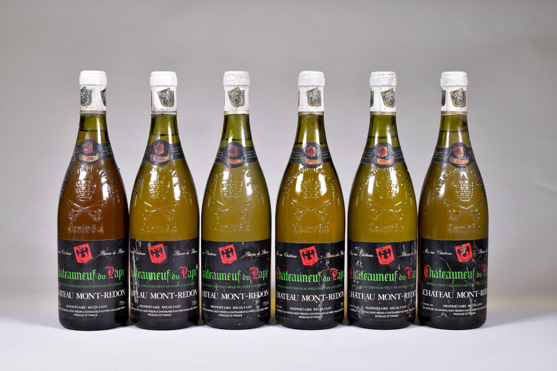 Lot n° 109 6 bouteilles, Châteauneuf-du-Pape (blanc), Château Mont Redon, 1992.… Estimation : 80 / 120 €