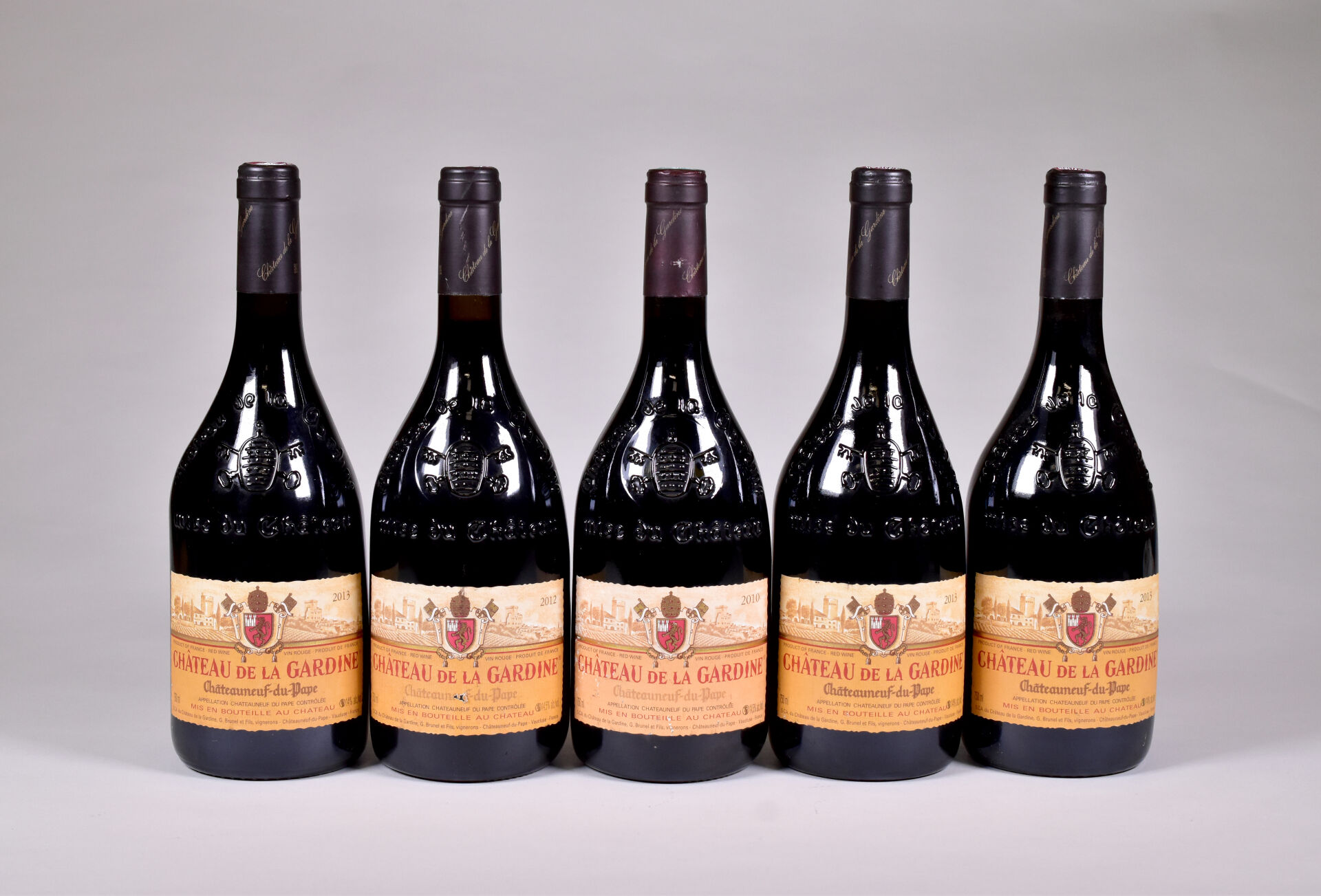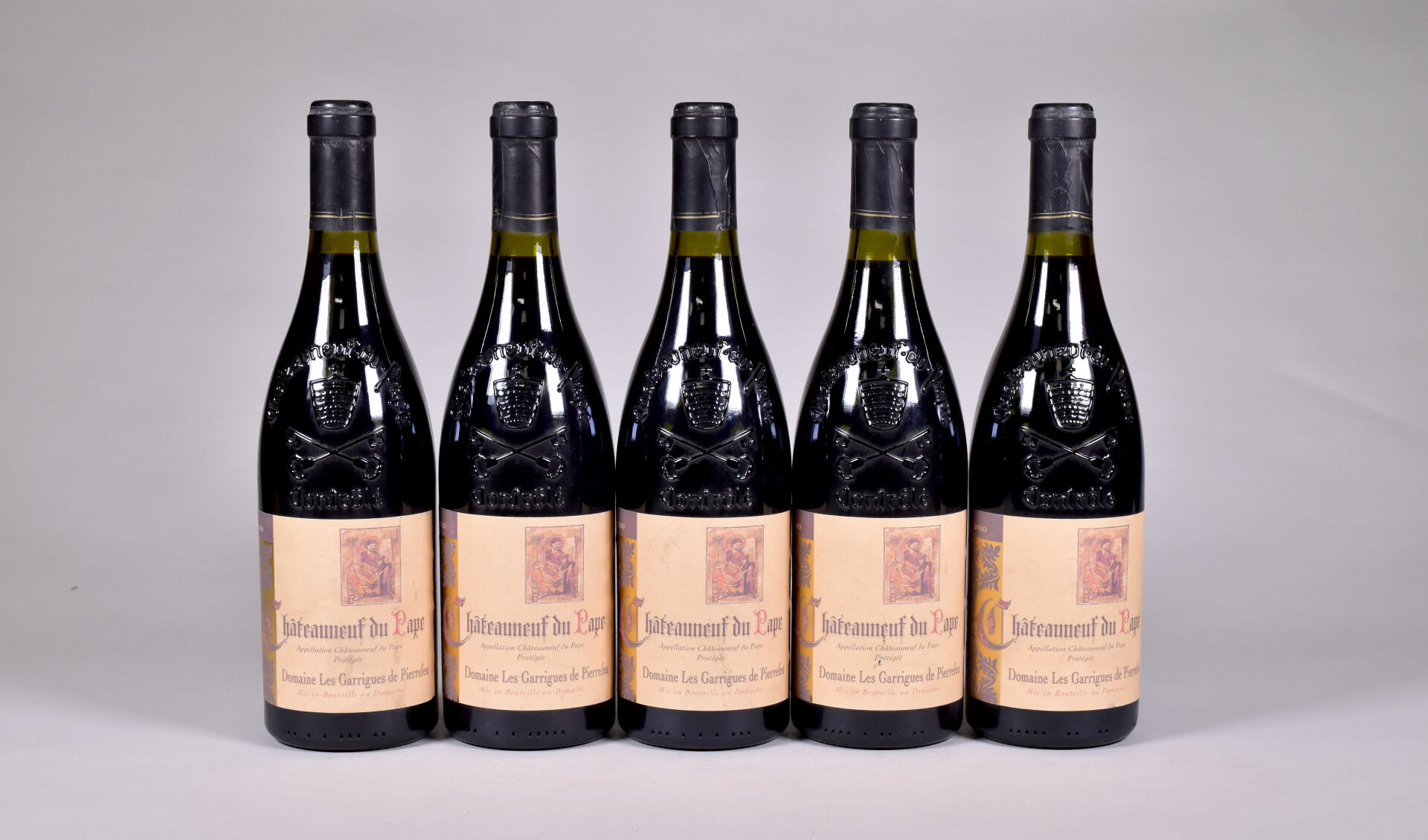 Lot n° 110 5 bouteilles, Châteauneuf-du-Pape, Domaine Les Garrigues de Pierrefeu,… Estimation : 75 / 100 €