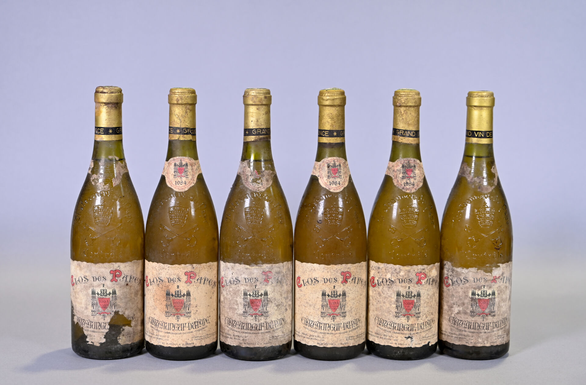 NOS LOTS EN VENTE AUX ENCHÈRES Lot n° 396 RHÔNE – 6 bouteilles, Châteauneuf-du-Pape (blanc), Clos des… Estimation : 100 / 150 € Lot n° 395 RHÔNE – Ensemble de 12 bouteilles composé de… Estimation : 180 / 240 € Lot n° 394 RHÔNE – 6 bouteilles, Châteauneuf-du-Pape, Domaine du Haut… Estimation : 80 / 110 € Lot n° 393 RHÔNE – 6 bouteilles, Châteauneuf-du-Pape, Domaine du Haut… Estimation : 90 / 120 € Lot n° 392 RHÔNE – 6 bouteilles, Châteauneuf-du-Pape, Domaine du Haut… Estimation : 90 / 120 € Lot n° 391 RHÔNE – 5 bouteilles, Châteauneuf-du-Pape, Clos Saint-André, 2000.… Estimation : 70 / 100 € Lot n° 390 RHÔNE – 2 bouteilles, Hermitage (rouge), Bernard Faurie,… Estimation : 280 / 380 € Lot n° 389 RHÔNE – 2 bouteilles, Hermitage (rouge), Bernard Faurie,… Estimation : 280 / 380 € Lot n° 388 RHÔNE – 2 bouteilles, Hermitage (rouge), Bernard Faurie,… Estimation : 280 / 380 € Page1 Page2 Page3 Page4 Page5