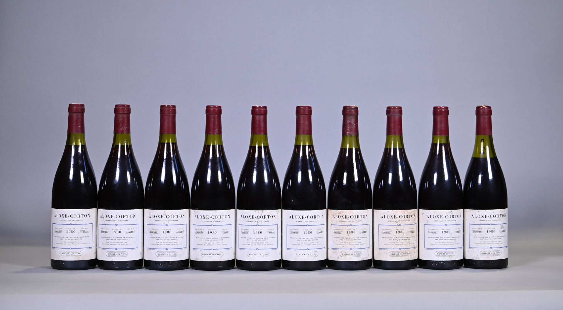 Lot n° 321 BOURGOGNE – 10 bouteilles, Aloxe-Corton, Perdrier Lavirotte, Marché… Estimation : 150 / 200 €
