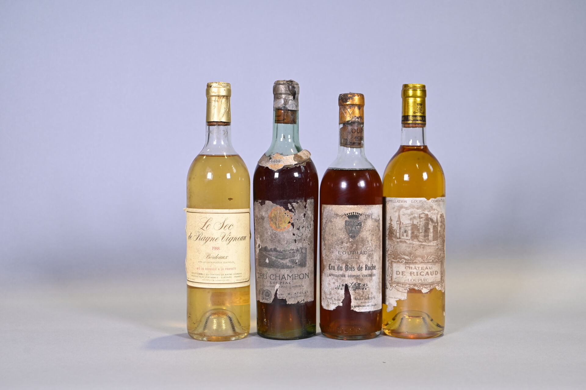 NOS LOTS EN VENTE AUX ENCHÈRES Lot n° 252 BORDEAUX – 5 bouteilles, Loupiac, Domaine de Fonthenille,… Estimation : 100 / 200 € Lot n° 251 BORDEAUX – 4 bouteilles, Loupiac, Domaine de Fonthenille,… Estimation : 70 / 100 € Lot n° 250 BORDEAUX – 12 bouteilles, Sainte-Croix-du-Mont, Château Bouchoc, 1957… Estimation : 60 / 90 € Lot n° 249 BORDEAUX – Ensemble de 12 bouteilles composé de… Estimation : 20 / 30 € Lot n° 248 BORDEAUX – Ensemble de 4 bouteilles composé :… Estimation : 30 / 50 € Lot n° 247 BORDEAUX – 2 bouteilles, Graves, Château Haut-Brion, 1er… Estimation : 200 / 300 € Lot n° 246 BORDEAUX – 2 bouteilles, Graves, Château Haut-Brion, 1er… Estimation : 240 / 360 € Lot n° 245 BORDEAUX – 2 bouteilles, Graves / Pessac-Léognan, Château… Estimation : 150 / 200 € Lot n° 244 BORDEAUX – 3 bouteilles, Graves, Château Smith Haut… Estimation : 140 / 180 € Page1 Page2 Page3 Page4 Page5