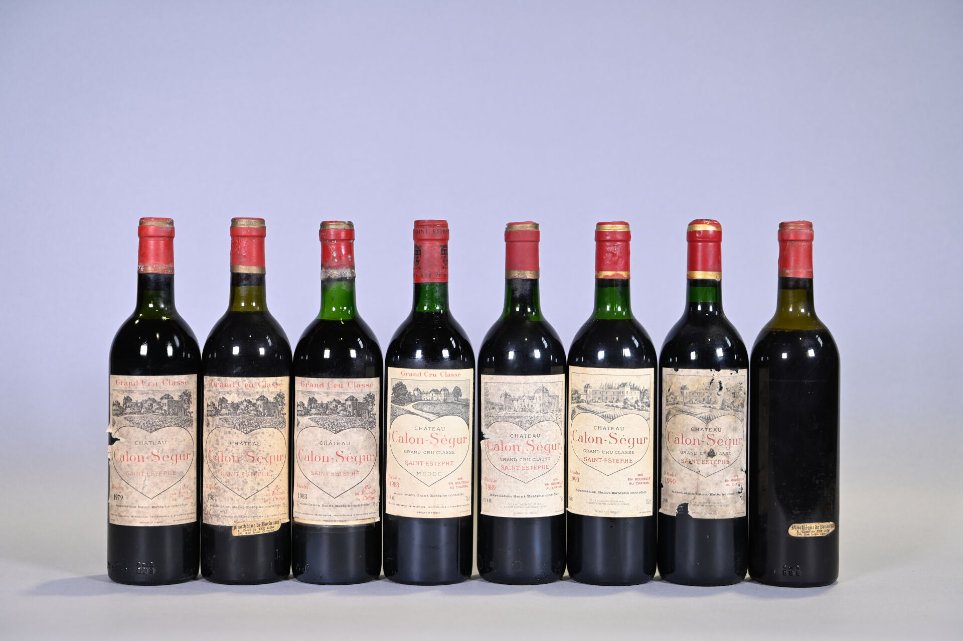 Lot n° 221 BORDEAUX – 8 bouteilles, Saint-Estèphe, Château Calon-Ségur, 3ème… Estimation : 200 / 280 €