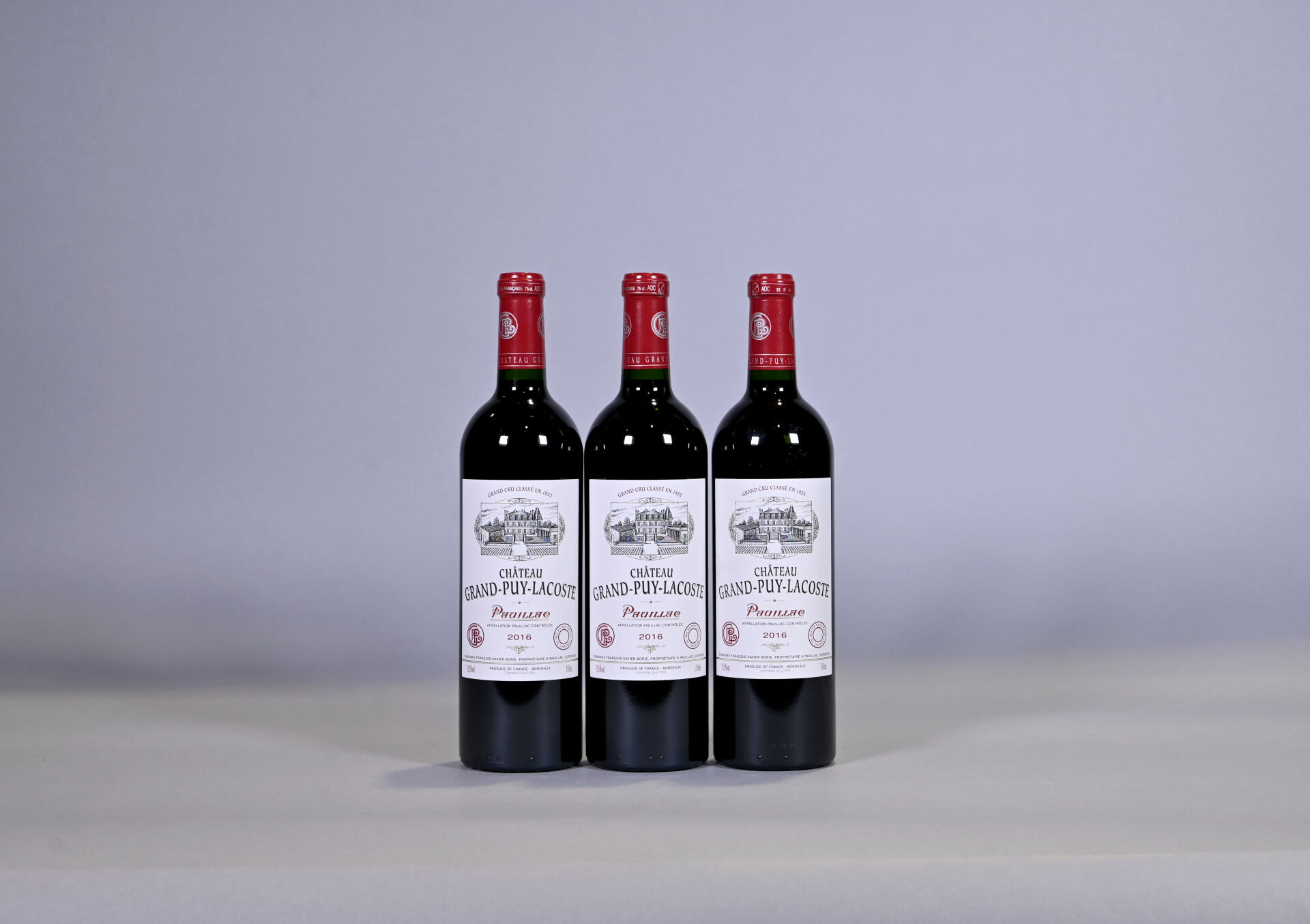 Lot n° 648 BORDEAUX – 3 bouteilles, Pauillac, Château Grand-Puy-Lacoste, 5ème… Estimation : 100 / 150 €