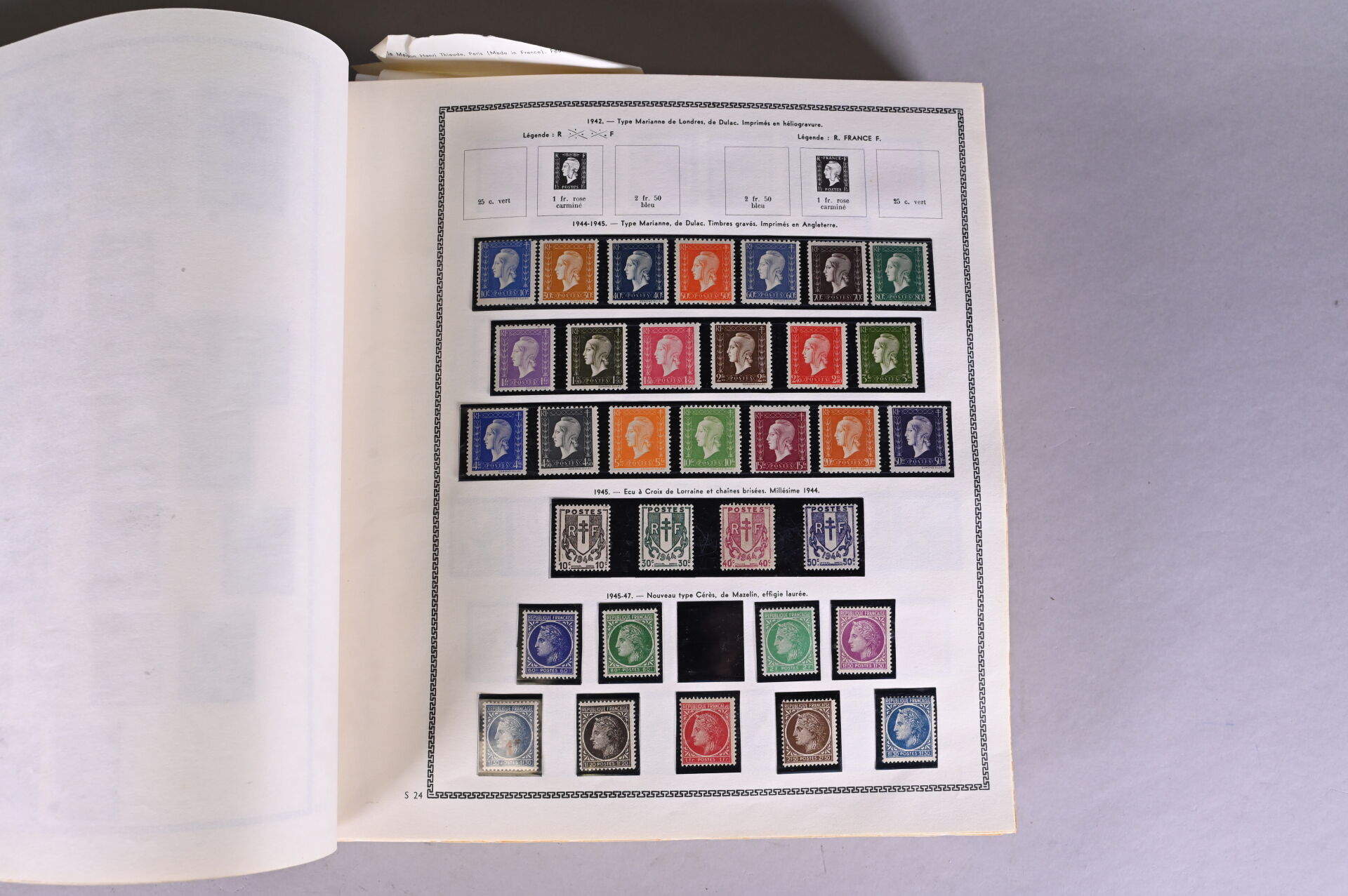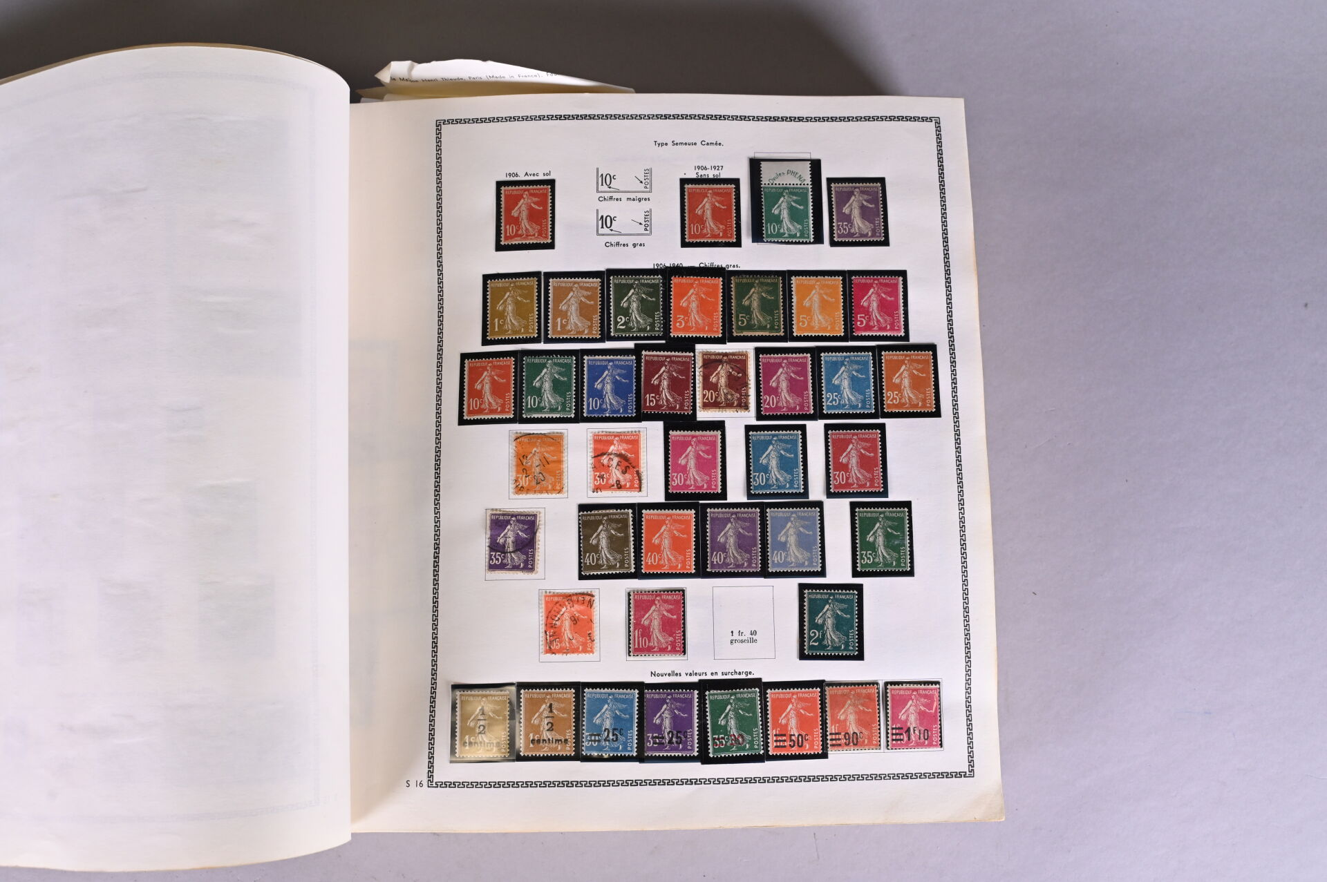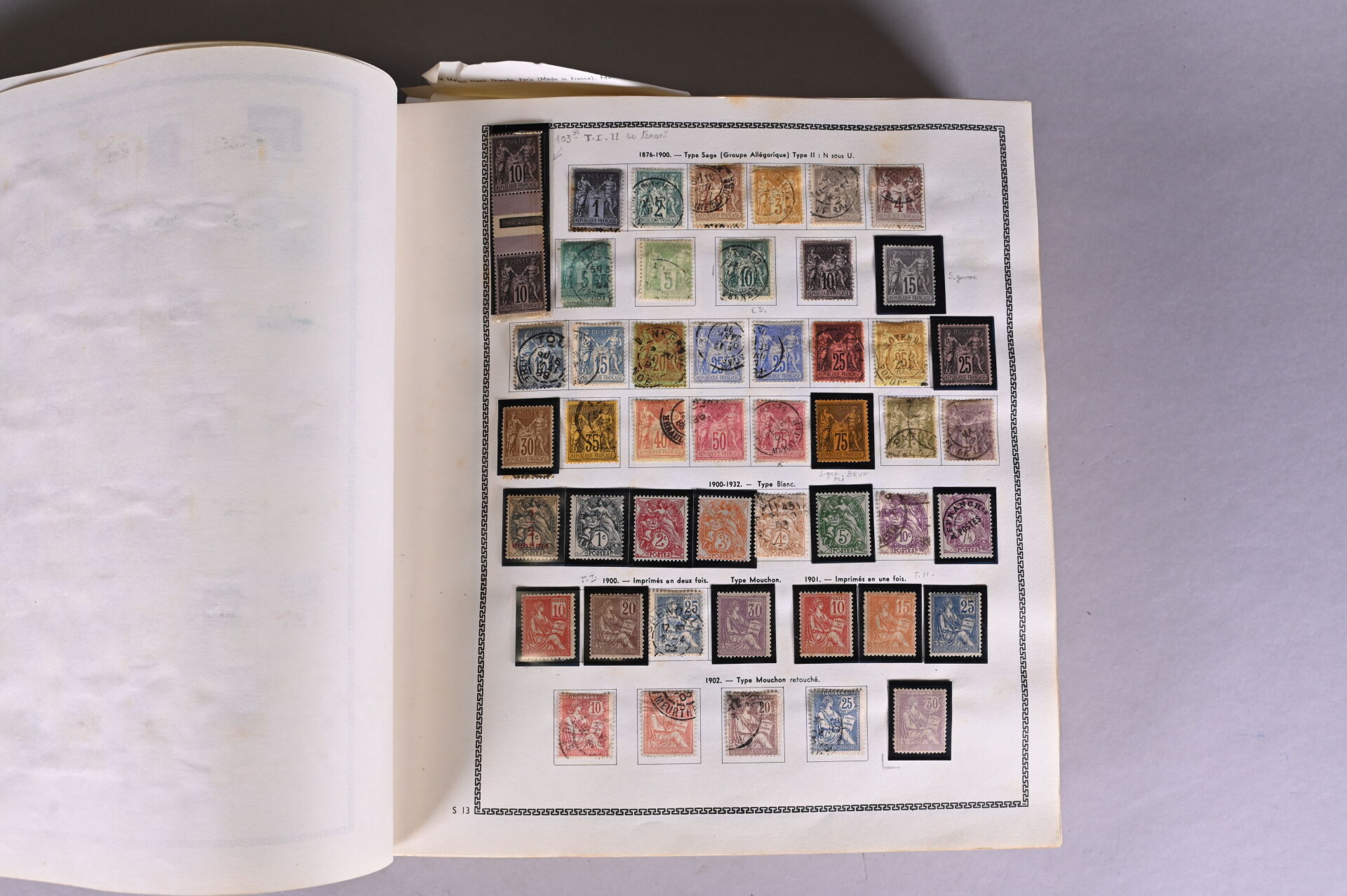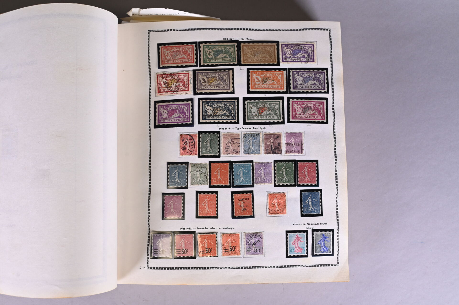 1 Album. **/*/O. France Classique et SM : Collection de timbres de France Classique en majorité obl. dont Cérès, Bordeaux, Empire et Sage dont n°103b et n°216 + SM dont Merson dont 2, 5, 10 et 20Fr neuf, Congrès de Bordeaux et Havre neufs, Monuments neuf, Samothrace, 2ème et 3ème Orphelins, CA incomplet neuf mais Sourire, Province et Travail, PA 15 obl. et Traversée de l’Atlantique. B à SUP. Une vidéo montrant l’intégralité des timbres peut être envoyée sur demande.