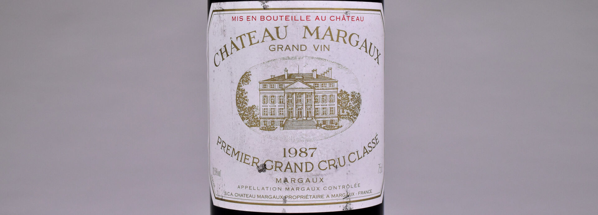 1 bouteille, Margaux, Château Margaux, 1er Grand Cru Classé, 1987. 1 TLB. La capsule et l’étiquette sont légèrement sales.