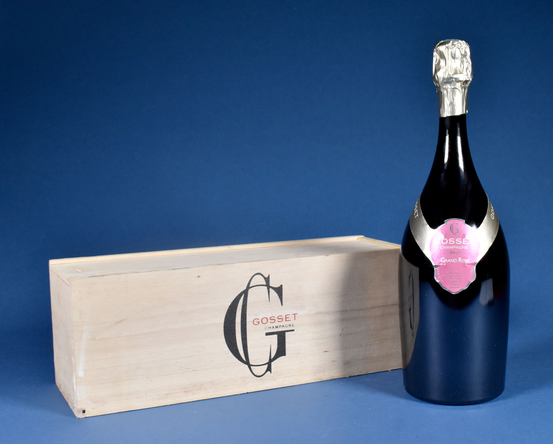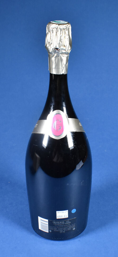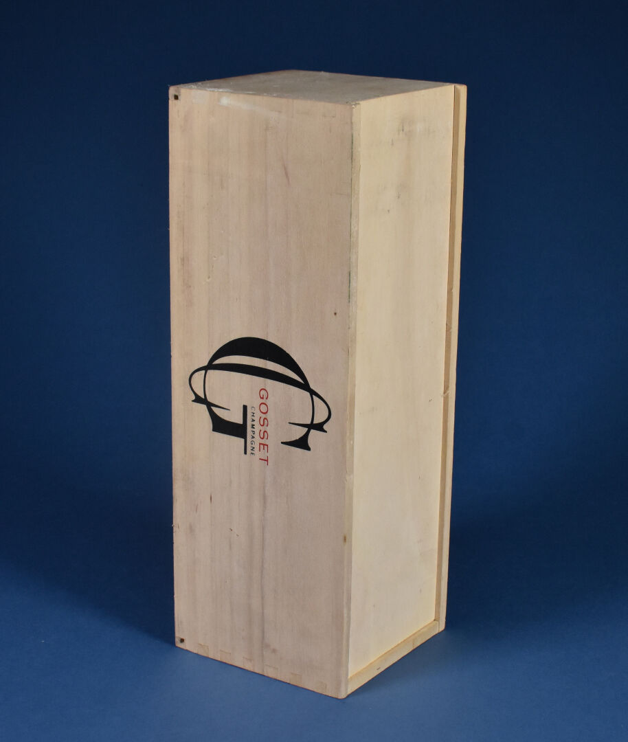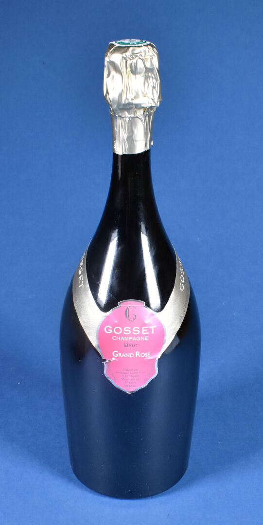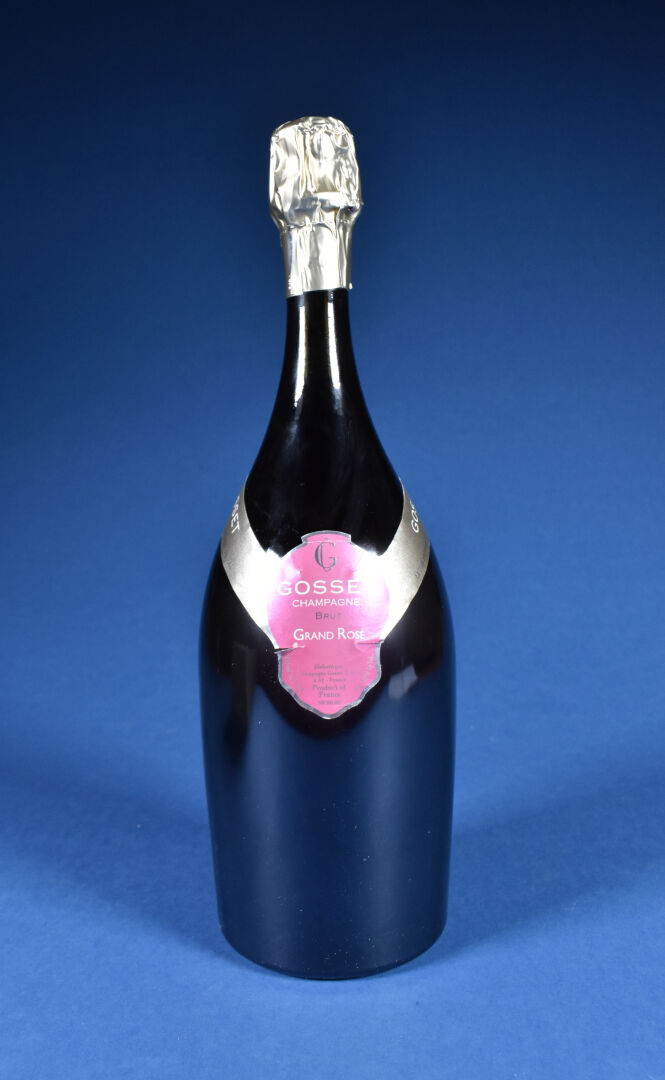 1 magnum, Champagne, Gosset, Grand Rosé, Brut. 4 cm. sous la coiffe. Étiquette avec quelques petits plis. En coffret bois d’origine.