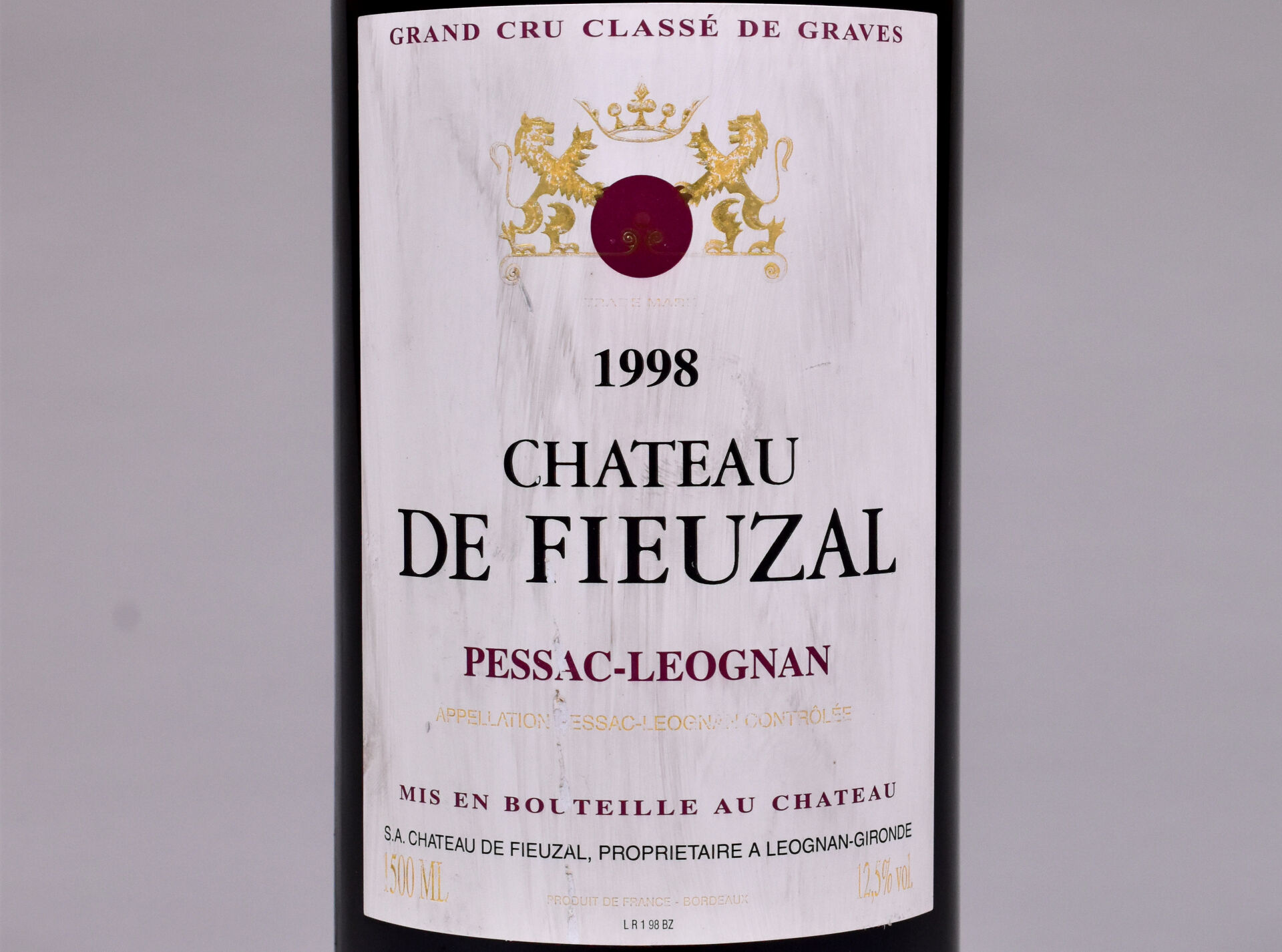 1 magnum, Pessac-Léognan, Château de Fieuzal, Grand Cru Classé de Graves, 1998. 1 BG. Étiquette légèrement sale.
