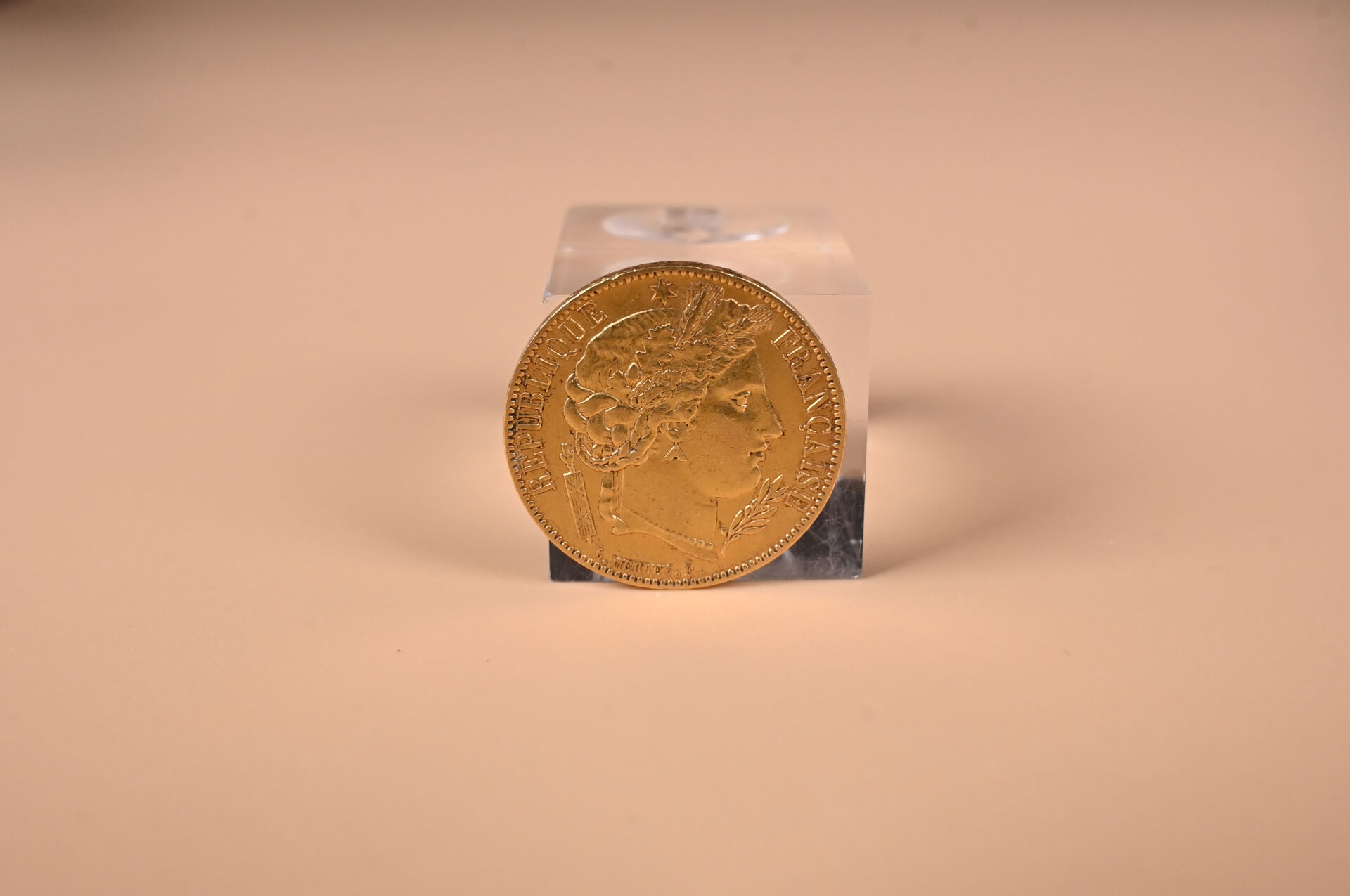 1 Pièce de 20 Francs or 1850 Cérès. Poids : 6,5 g.