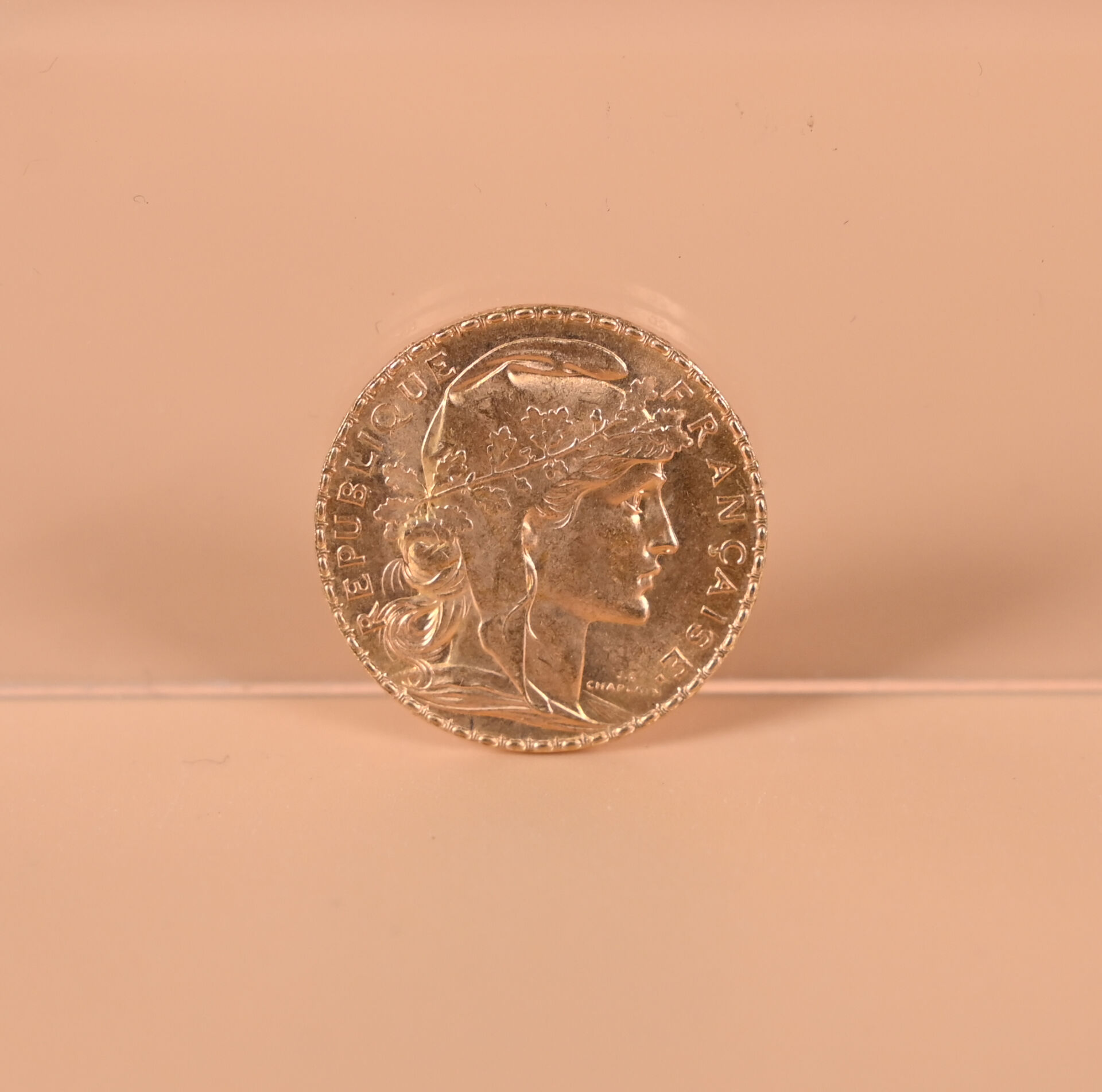 1 Pièce de 20 Francs or 1909 au coq. Poids : 6,43 g.