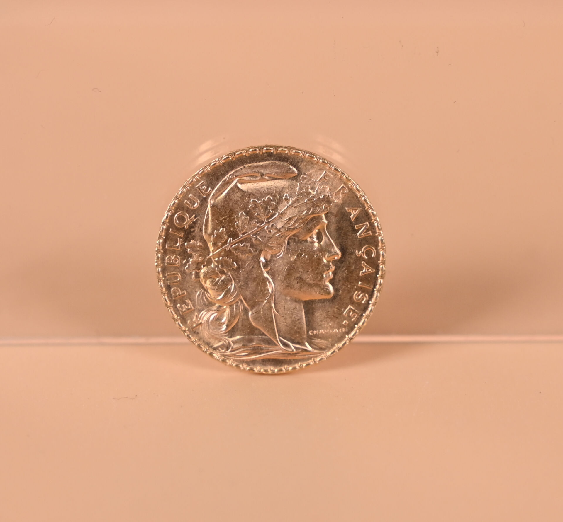 1 Pièce de 20 Francs or 1909 au coq. Poids : 6,46 g.