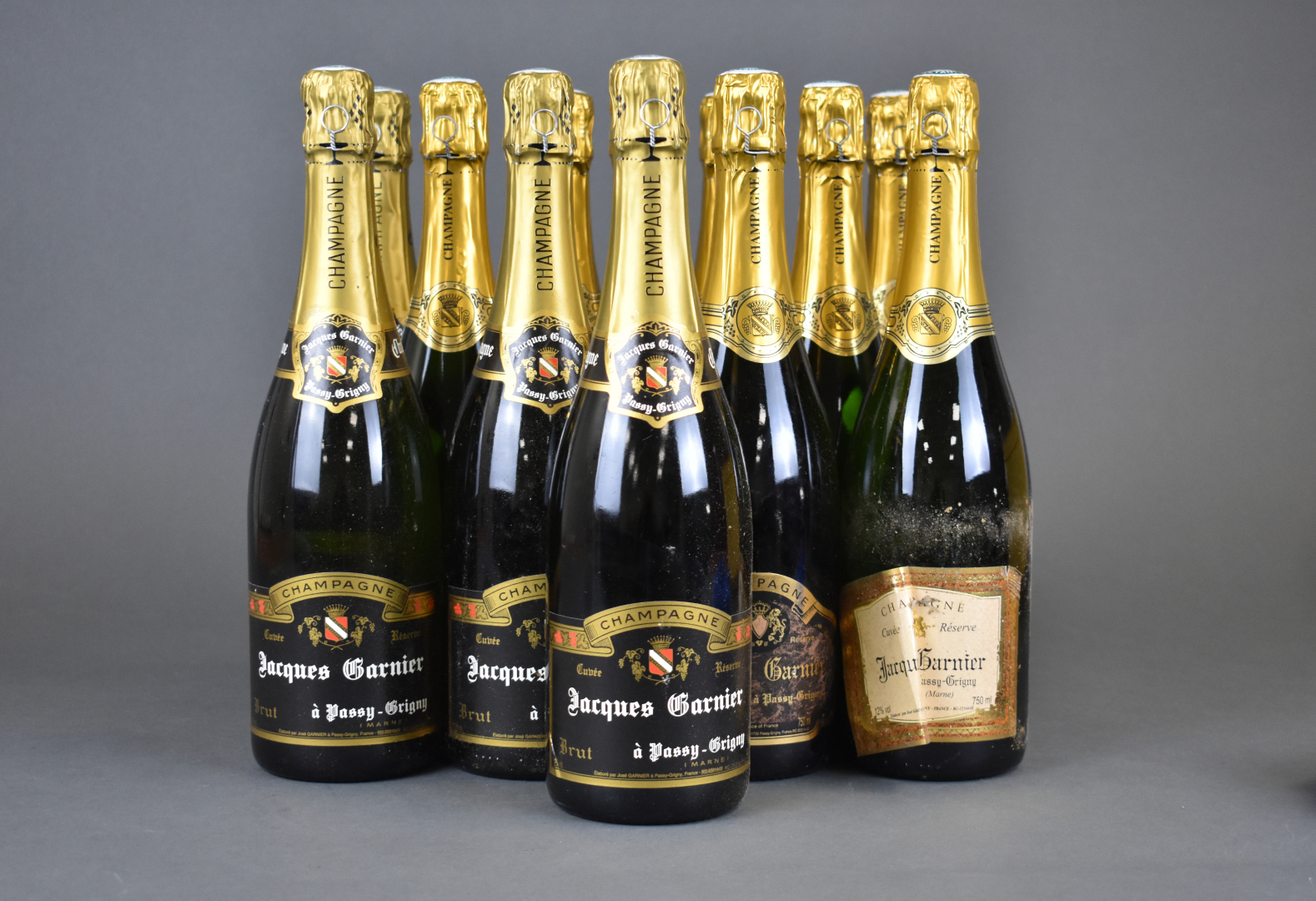 12 Bouteilles de champagne JACQUES GARNIER, plusieurs étiquettes cuvée réserve.