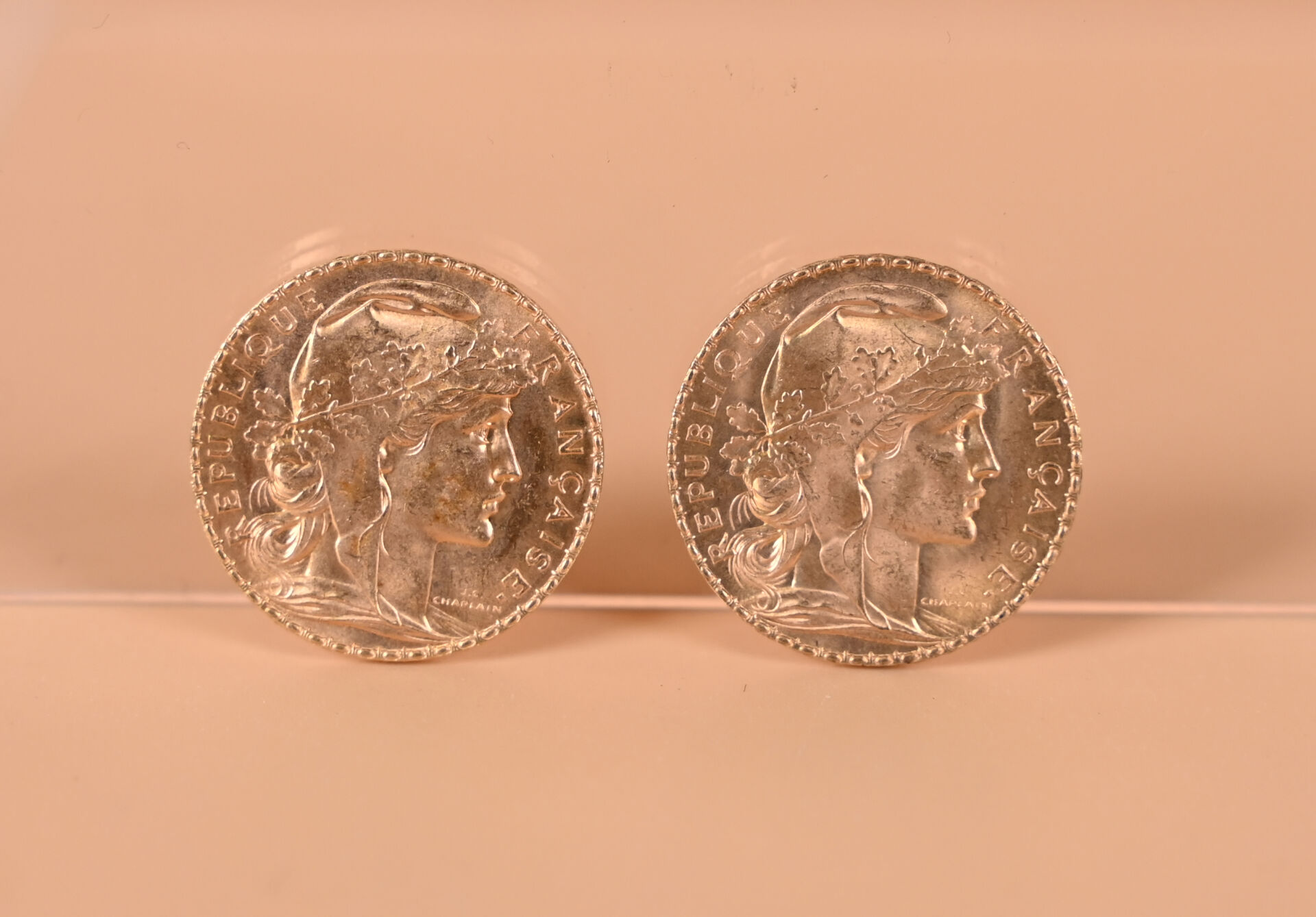 2 Pièces de 20 Francs or 1909 au coq. Poids total : 12,89 g.