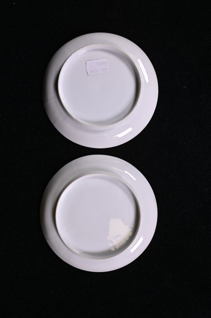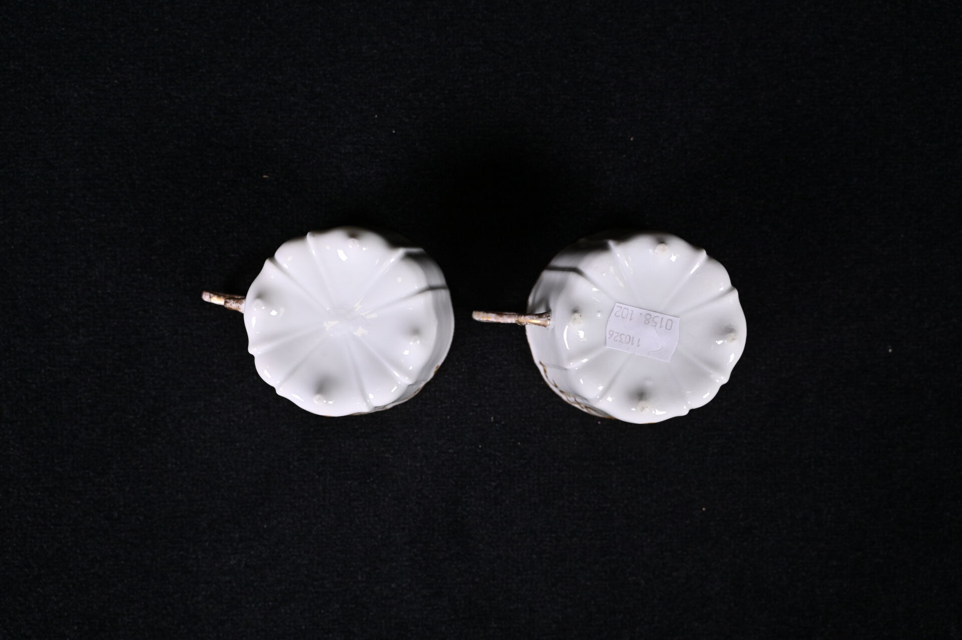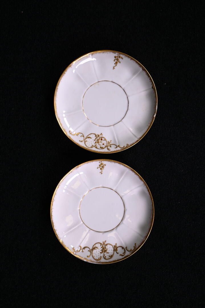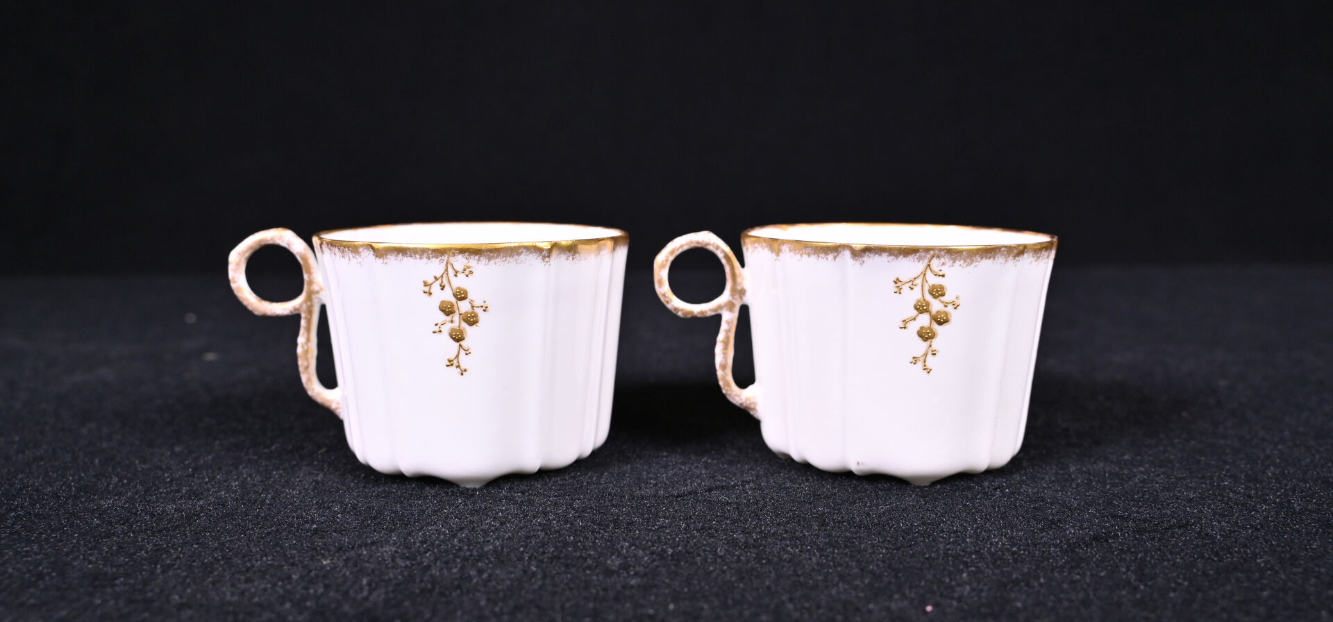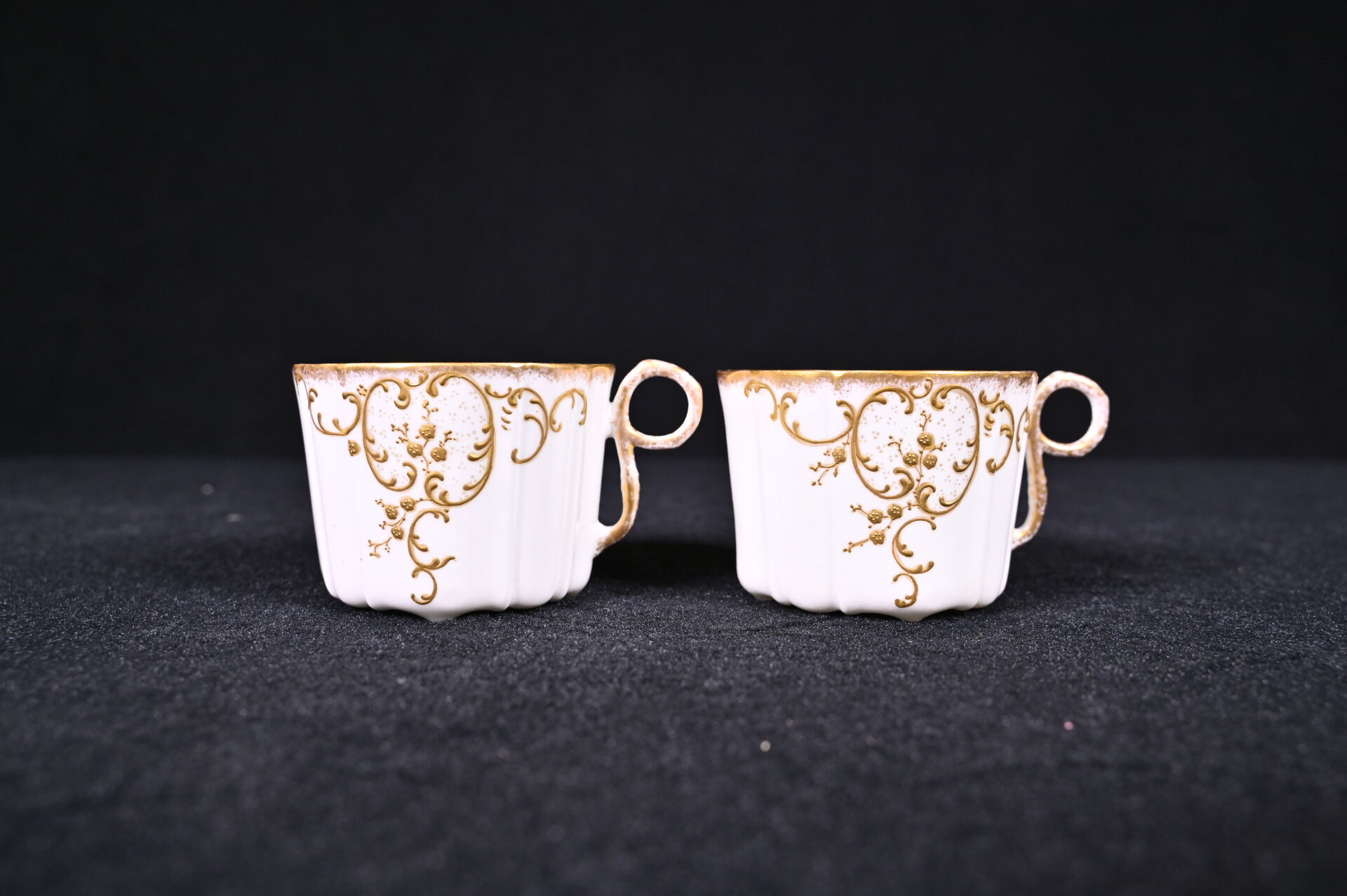 2 tasses et sous-tasses en porcelaine fine à décor en dorure. STyle Louis XV, XIXe siècle.