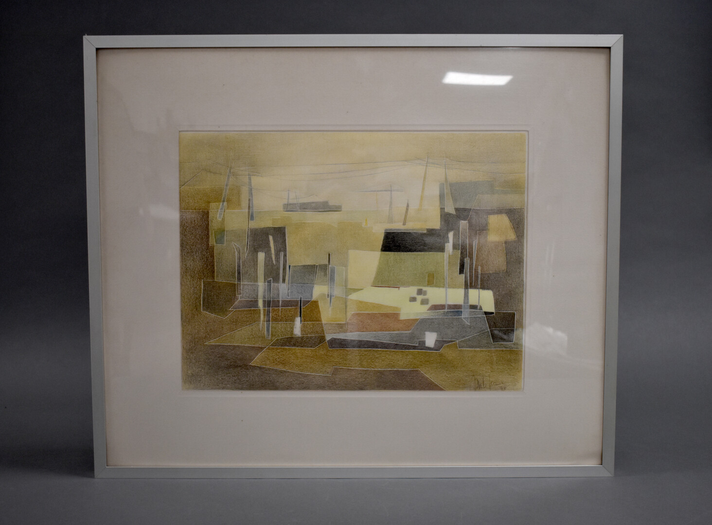 A.M. LEFRANC (XXe siècle). « La ville nouvelle ». Dessin au crayon gras signé et daté (19)78 en bas à droite. 30 x 39,7 cm.