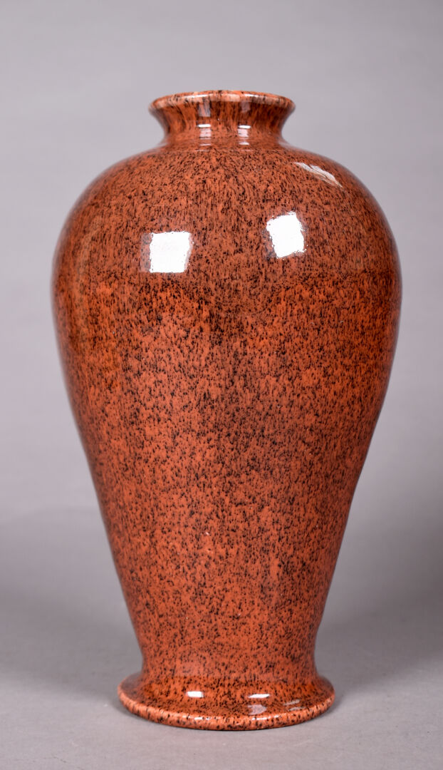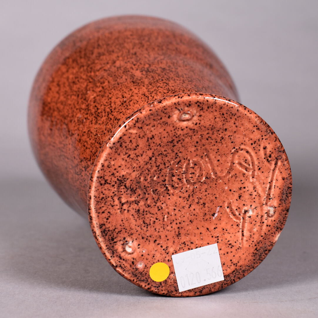 ACCOLAY. Vase balustre à col resserré en céramique émaillée rouille. Signé sous la base. Haut. : 25 cm.